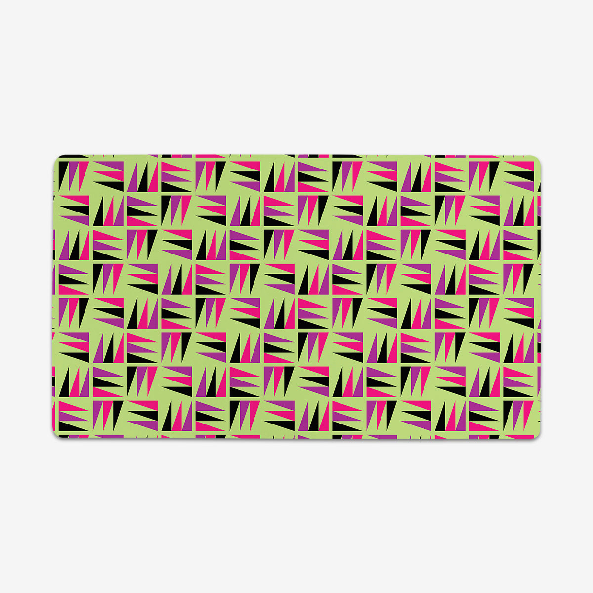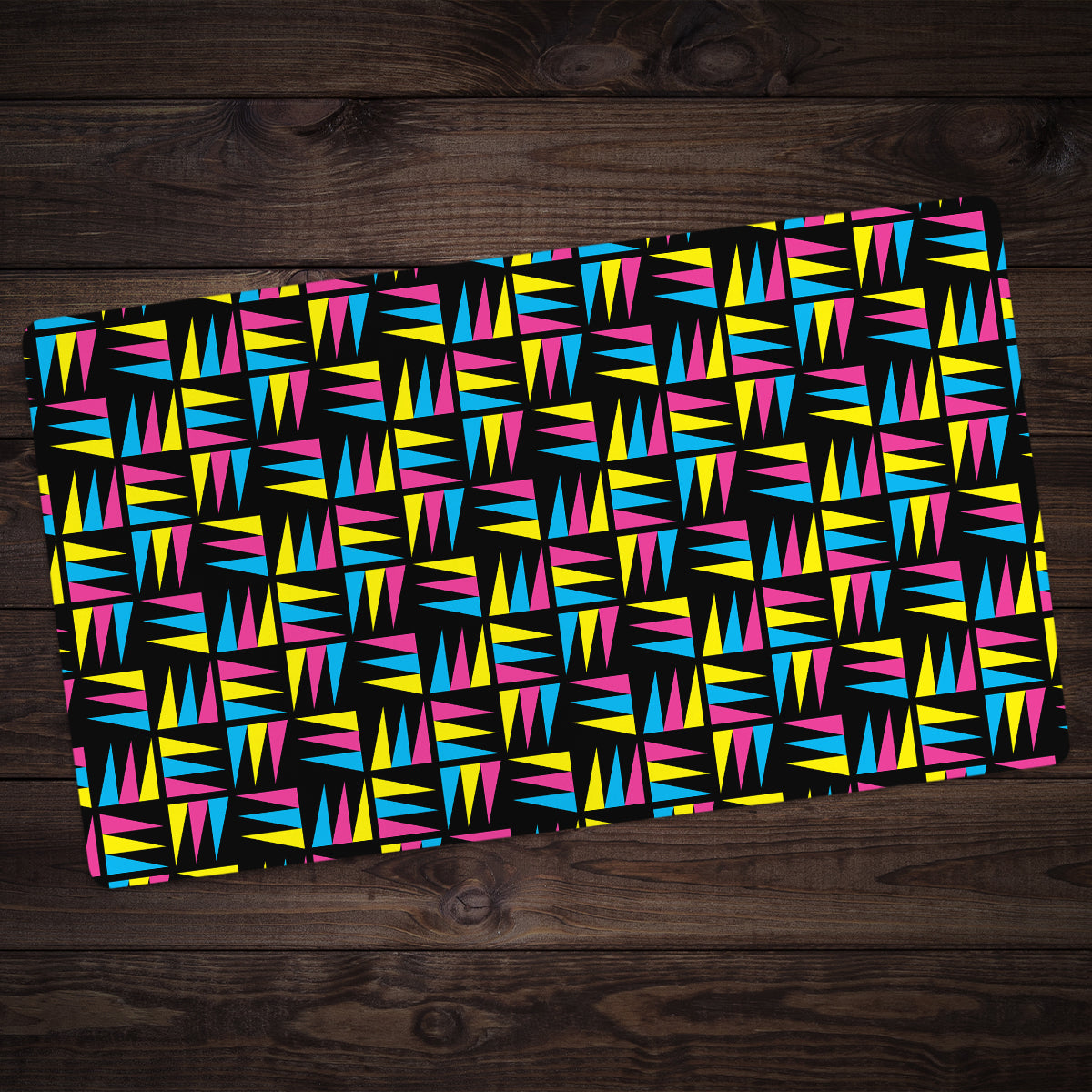 Standard Playmat measures at 24” x 14” inches and is 1/16 of an inch thick. It’s made with a smooth cloth top and strong rubber backing.