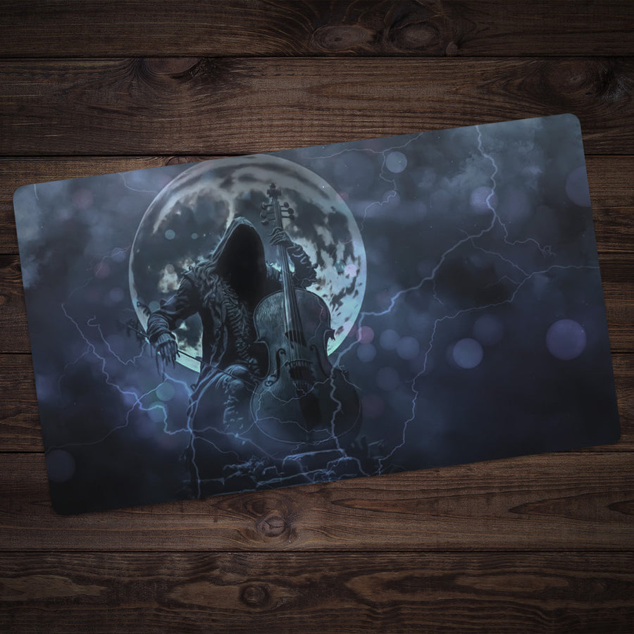 Standard Playmat measures at 24” x 14” inches and is 1/16 of an inch thick. It’s made with a smooth cloth top and strong rubber backing.