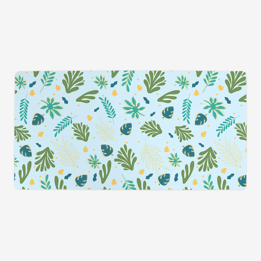Standard Playmat measures at 24” x 14” inches and is 1/16 of an inch thick. It’s made with a smooth cloth top and strong rubber backing.