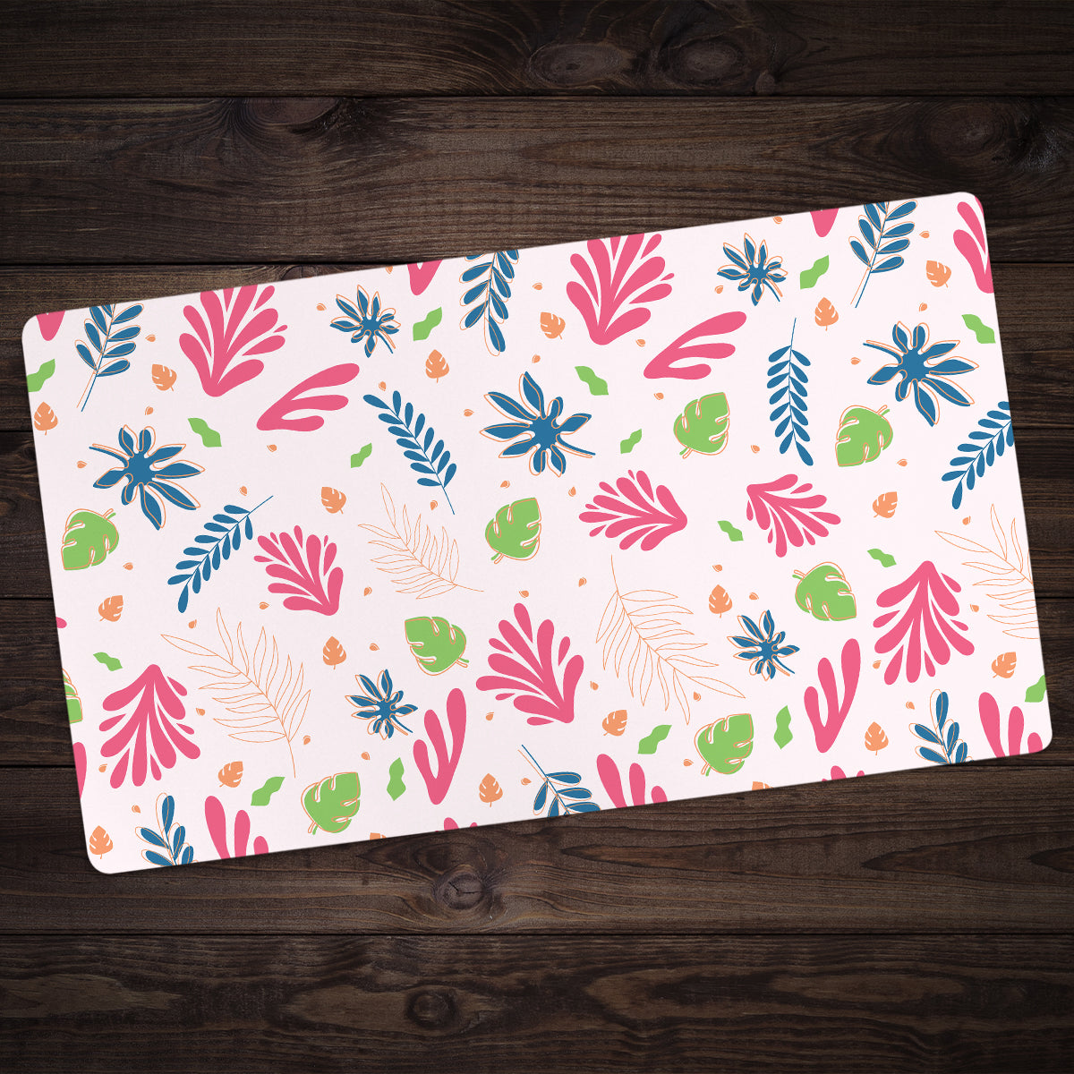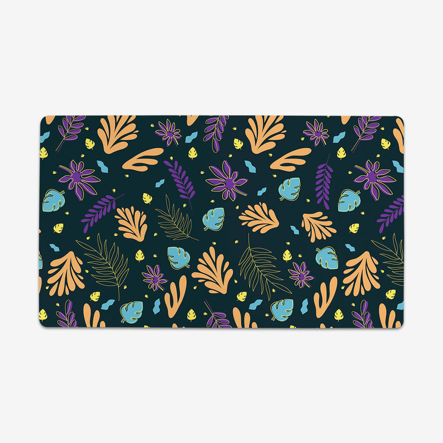 Oversized Playmat measures at 28” x 14” inches and is 1/16 of an inch thick. It’s made with a smooth cloth top and strong rubber backing.