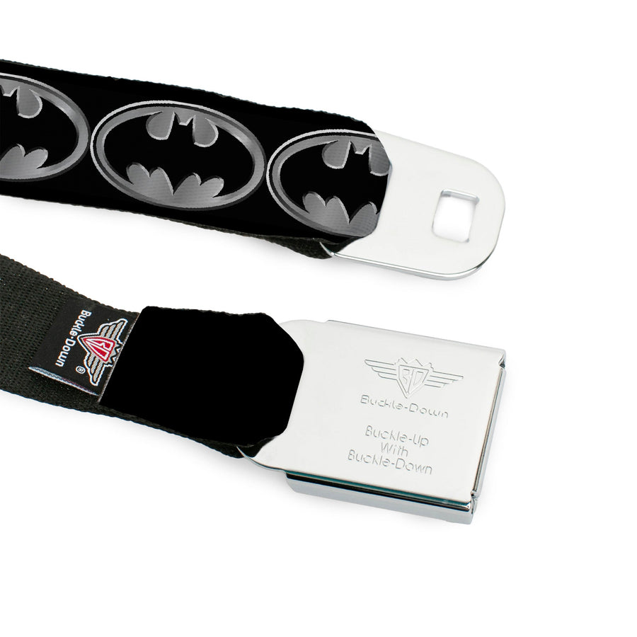 Batman Black Silver Seatbelt Belt - Batman Shield Black/Silver Webbing