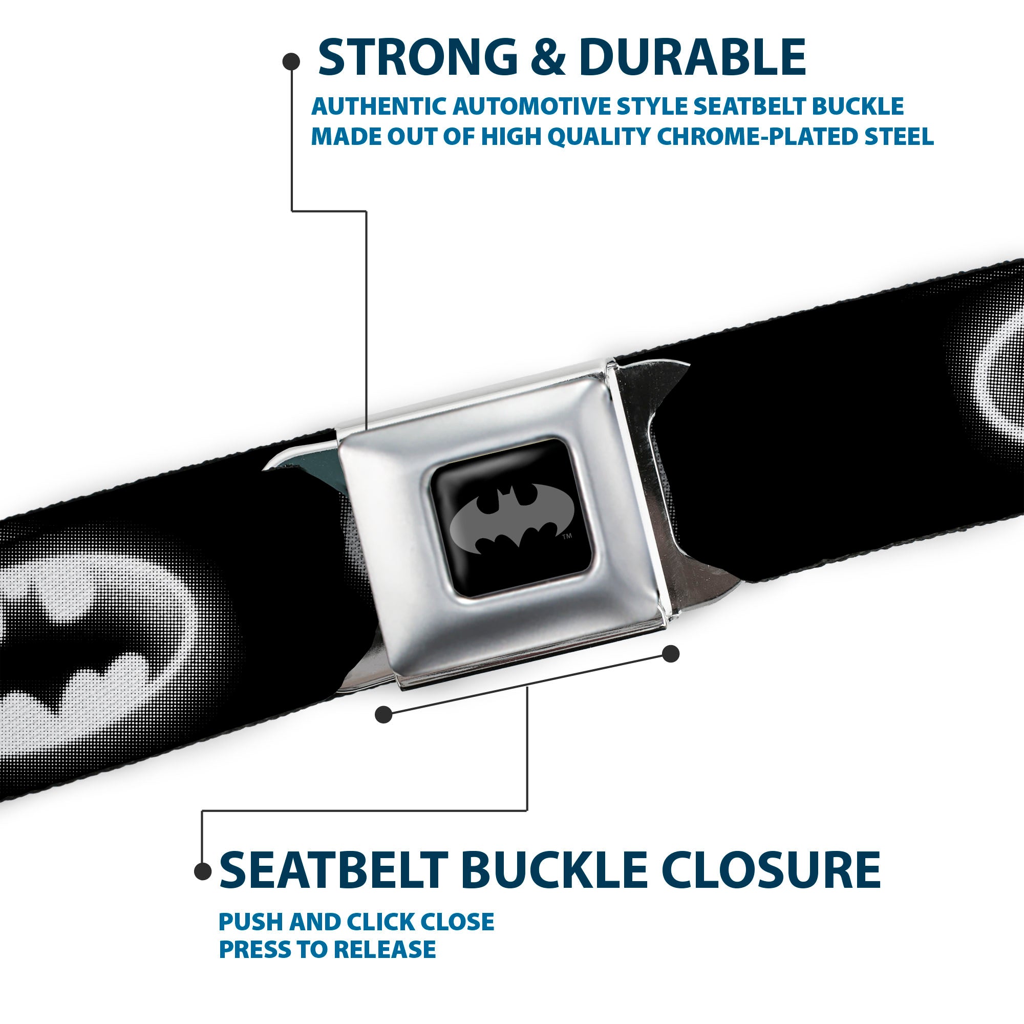 - The design of the Buckle-Down Seatbelt Belt is protected by US Trademark Registration Number 5472519. This product is Officially Licensed by DC Comics.