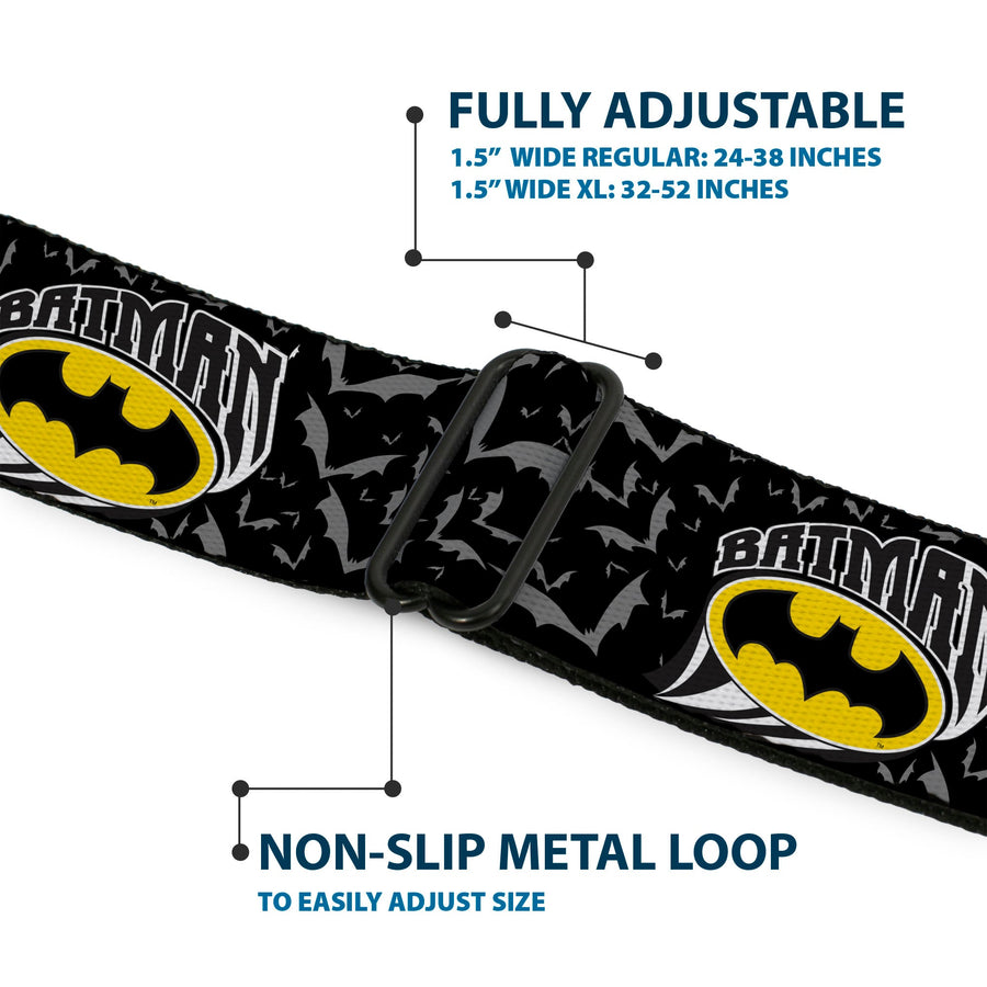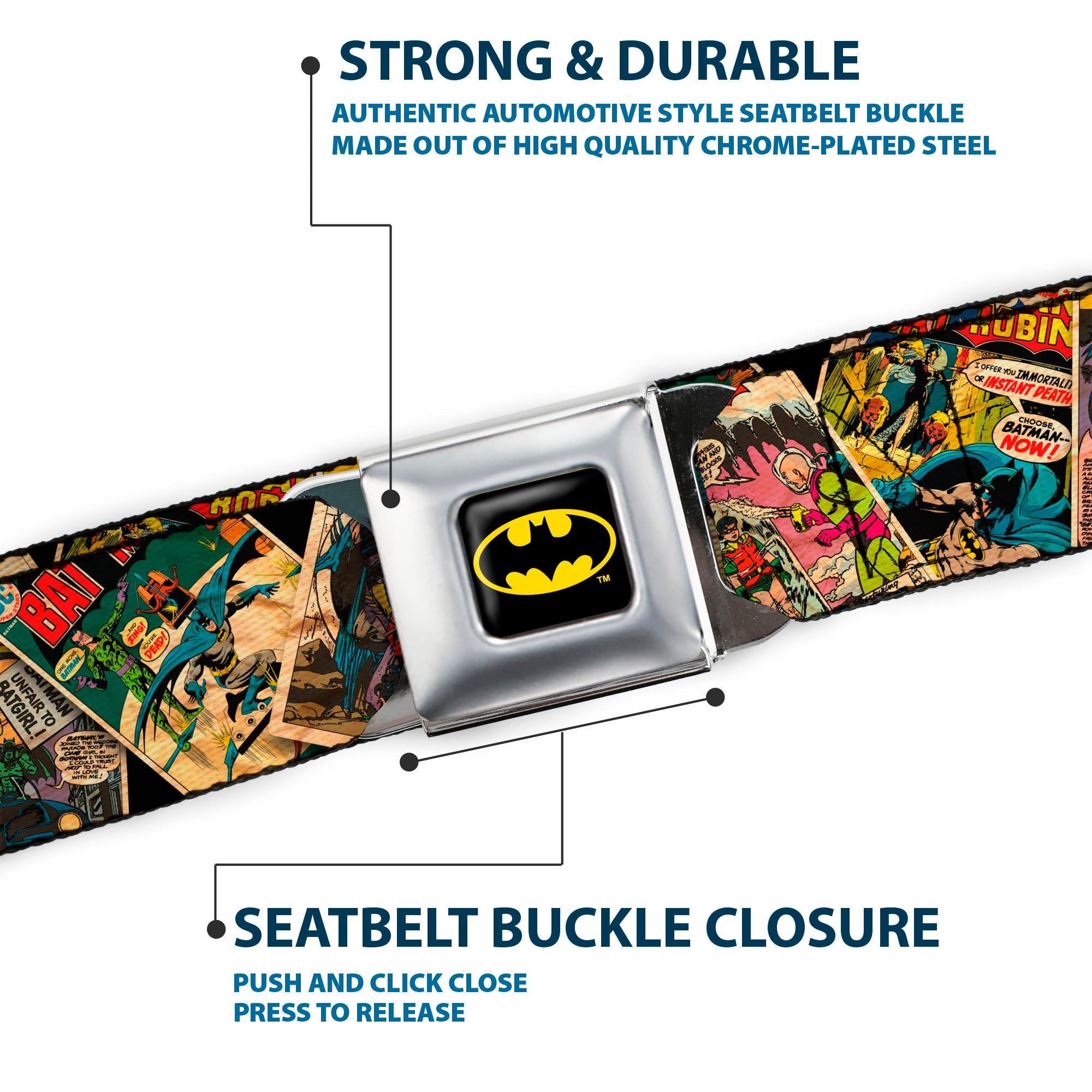 Buckle-Down's iconic Seatbelt Belt is a cool, smart, and exciting blend of fashion and function. Always a conversation starter, our Seatbelt Belt adjusts to perfectly fit your waist while showcasing your unique sense of style. Our Seatbelt Belts are made with authentic automotive style seatbelt buckles making them easy to open and close at the push of a button. Our adult-size Seatbelt Belts are 1.5 inches wide and our kid-sized Seatbelt belts are 1.0 inch wide. This product is Handcrafted in USA by Buckle-Down Inc. and officially licensed by DC Comics.