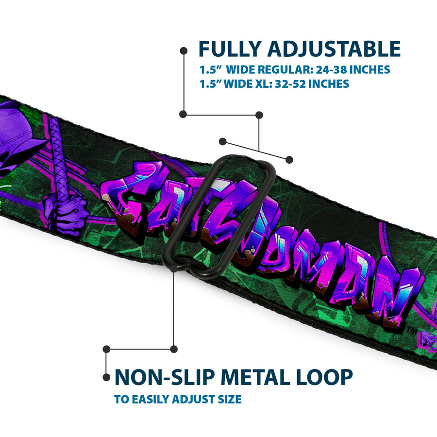 Buckle-Down's iconic Seatbelt Belt is a cool, smart, and exciting blend of fashion and function. Always a conversation starter, our Seatbelt Belt adjusts to perfectly fit your waist while showcasing your unique sense of style. Our Seatbelt Belts are made with authentic automotive style seatbelt buckles making them easy to open and close at the push of a button. Our adult-size Seatbelt Belts are 1.5 inches wide and our kid-sized Seatbelt belts are 1.0 inch wide. This product is Handcrafted in USA by Buckle-Down Inc. and officially licensed by DC Comics.