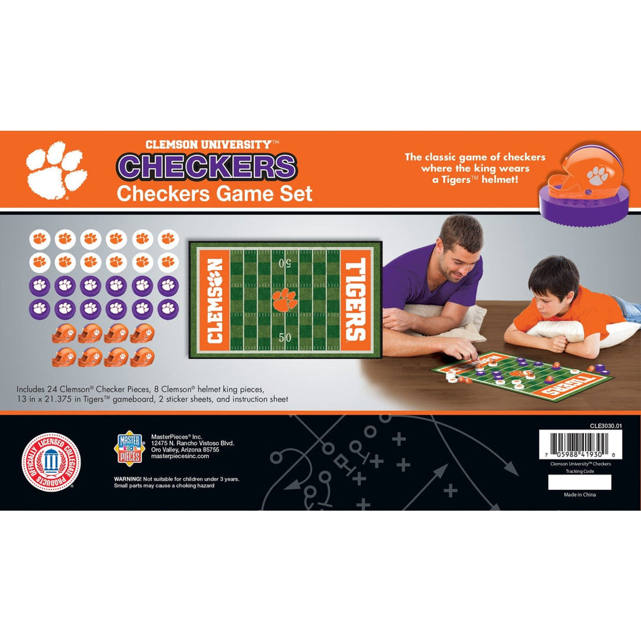 If you're a fan of the Clemson Tigers, then you're going to love this officially licensed MasterPieces NCAA Clemson Tigers Checkers Board Game. This classic game of checkers is a ton of fun for children and adults ages 6 and up, and it's a great way to show your Clemson Tigers pride. This checkers game comes with 24 Clemson Tigers checkers pieces, 8 helmet king pieces, a 13 inches x 21.375 inches game board, 1 sticker sheet, and an instruction sheet. So get ready to put your skills to the test and crown yourself the checkers champion!