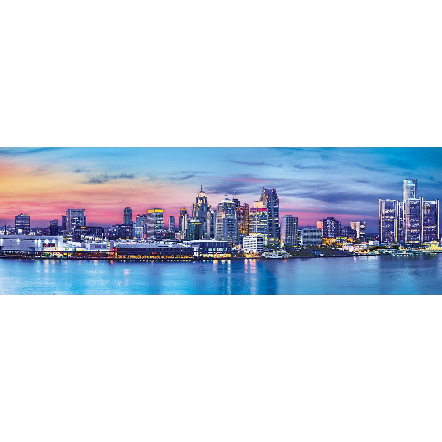Introducing the American Vista Panoramic - Detroit 1000 Piece Puzzle, a captivating and immersive jigsaw puzzle that allows you to explore the breathtaking cityscape of Detroit, Michigan. With its rich history, iconic landmarks, and vibrant urban culture, Detroit is a city that exudes both charm and resilience, and this puzzle beautifully captures its essence. Featuring a stunning panoramic view, this puzzle transports you to the heart of Detroit, offering an immersive experience as you assemble the pieces and witness the city come to life. From the towering skyscrapers that dominate the downtown skyline to the serene waters of the Detroit River, every intricate detail has been carefully preserved to provide an authentic and engaging puzzle-solving adventure. With a total of 1000 pieces, this puzzle is a medium challenge that offers hours of entertainment and relaxation. The puzzle pieces are expertly crafted from premium, durable materials to ensure a satisfying and seamless fitting. The precision-cut pieces are designed to interlock securely, minimizing the risk of accidental separation and allowing you to focus on the joy of puzzling. The American Vista Panoramic - Detroit 1000 Piece Puzzle is not just a source of entertainment; it is also an artistic masterpiece. The vibrant colors and intricate architectural details make this puzzle a visual delight, capturing the essence of Detroit's urban landscape.