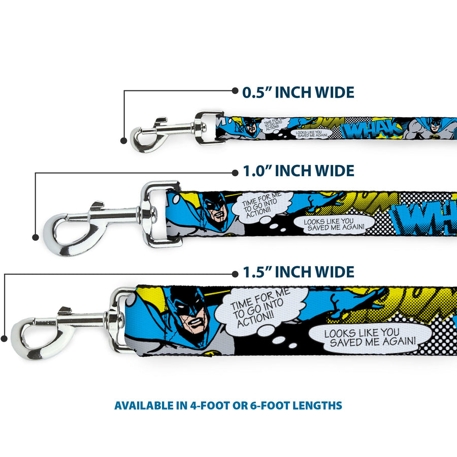 This fashion-forward dog leash is a great way to show off your favorite characters or brands. The durable components and beautiful printing ensure that the colors will continue to pop for years to come! It is made of high-density polyester and steel hardware. The leash is available in 0.5, 1.0 and 1.5 inches wide, and 4 and 6 feet in length. This product is Made in the USA by Buckle-Down Inc. and officially licensed by DC Comics.