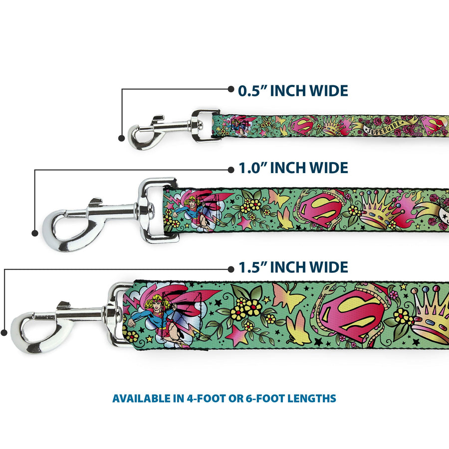 This fashion-forward dog leash is a great way to show off your favorite characters or brands. The durable components and beautiful printing ensure that the colors will continue to pop for years to come! It is made of high-density polyester and steel hardware. The leash is available in 0.5, 1.0 and 1.5 inches wide, and 4 and 6 feet in length. This product is Made in the USA by Buckle-Down Inc. and officially licensed by DC Comics.