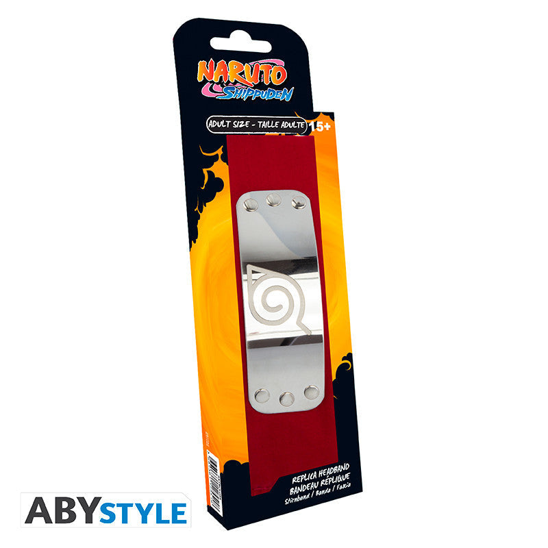 The Naruto Shippuden – Red Konoha Headband (Adult Size) by Abysse is an officially licensed replica of the iconic ninja headband worn throughout the beloved anime series Naruto Shippuden. Featuring the Konoha Village symbol engraved on a metal plate with a bold red cloth band, this headband is the essential accessory for any Naruto cosplay, convention appearance, or fan display.