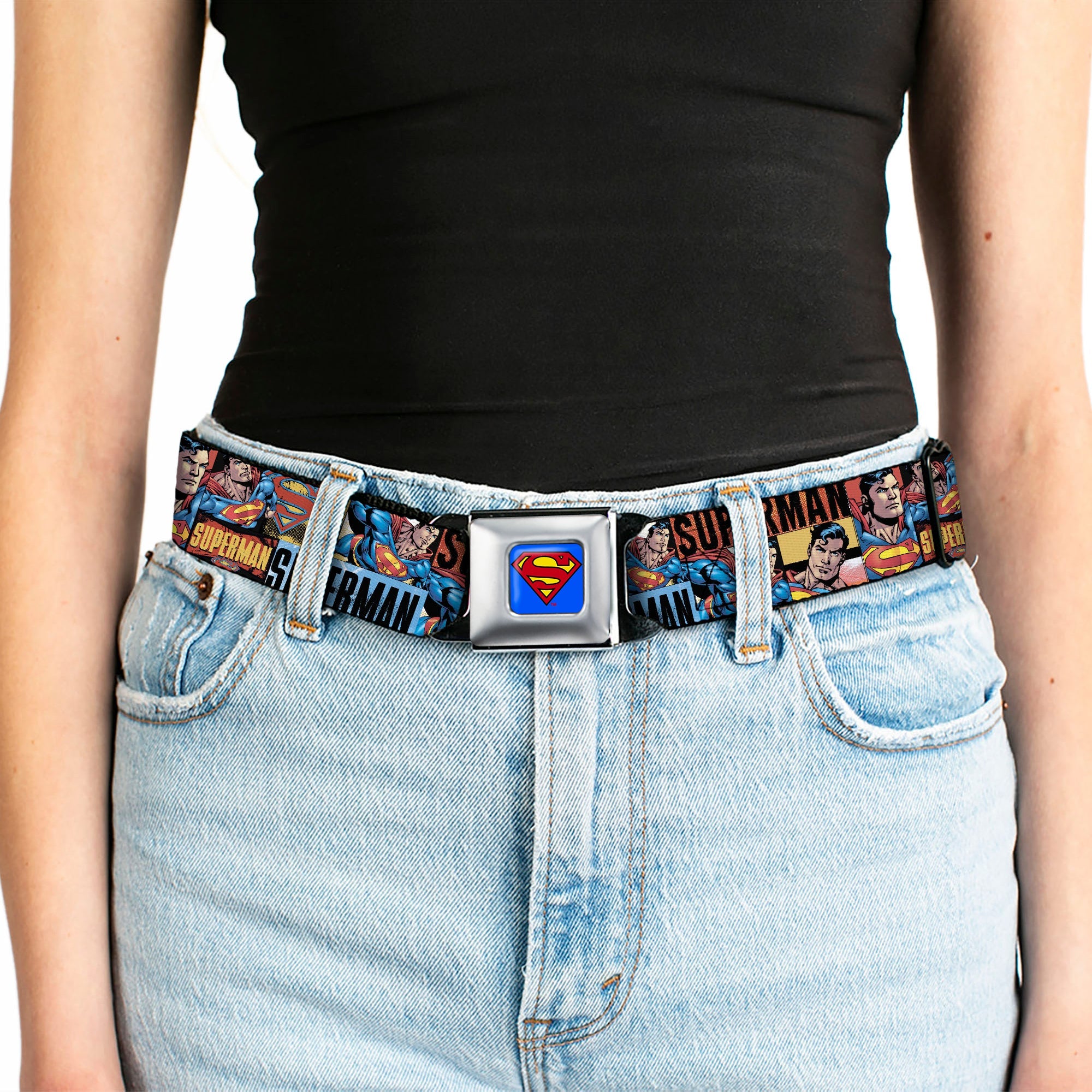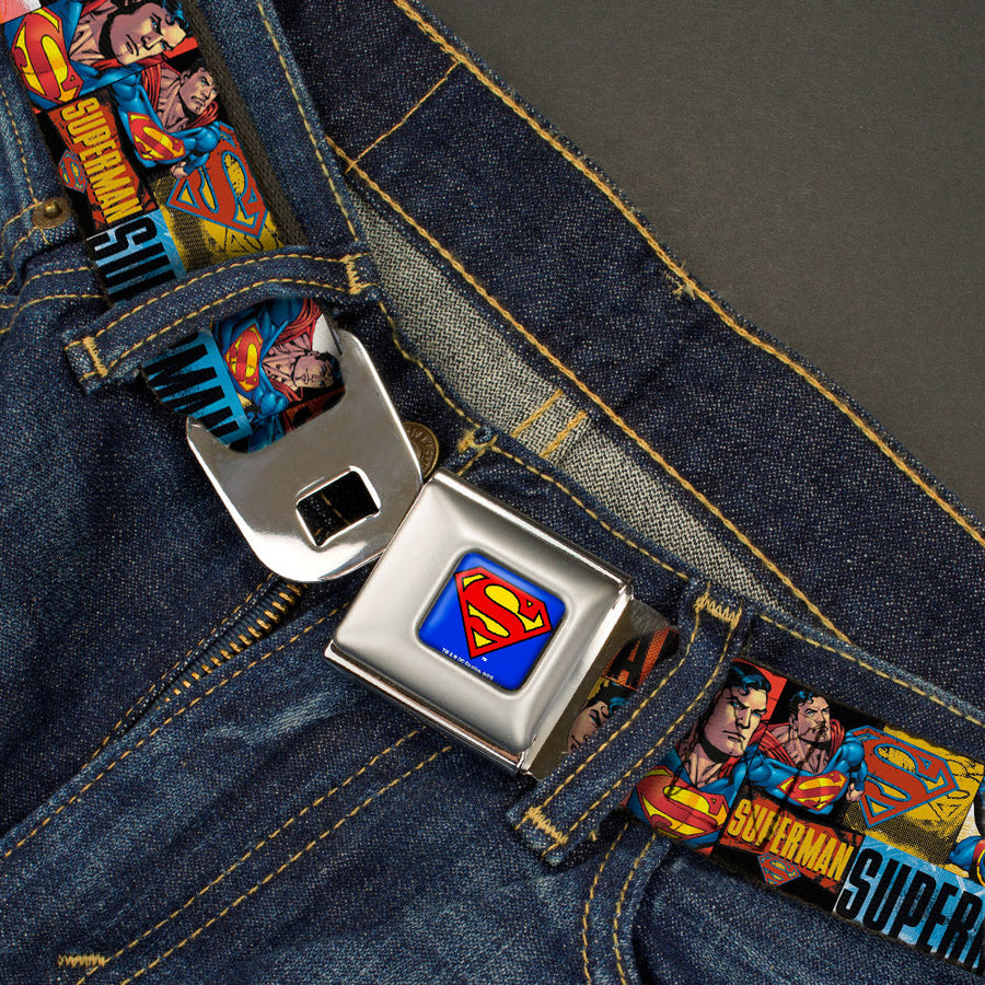 Superman Full Color Blue Seatbelt Belt - SUPERMAN Action Blocks Red/Blue Webbing