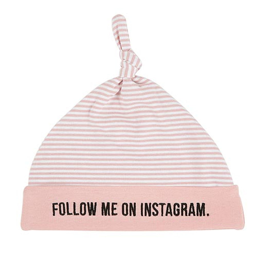 Dress your little one in style with this adorable Baby Pink Striped Knit Hat featuring the words "Follow Me On Instagram". Perfect for the budding influencer in your life, this hat is sure to turn heads at playdates and on social media. Makes a thoughtful gift for baby showers or birthdays! #babyfashion #Instagraminfluencer #babygifts