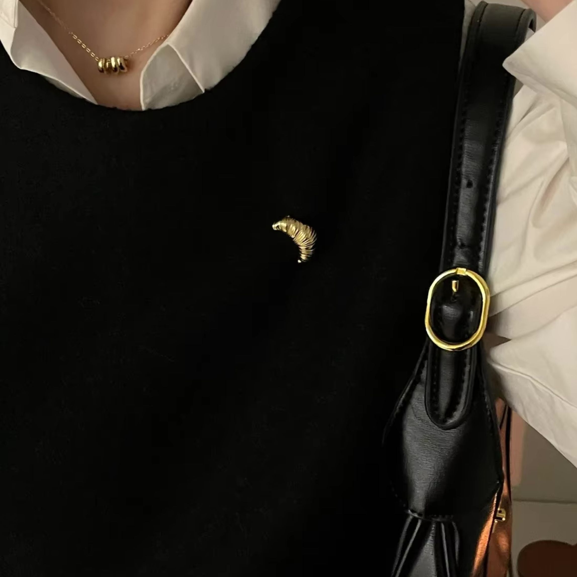 Add a playful Parisian touch to your wardrobe with this stylish croissant brooch—because who doesn’t love a little French flair?