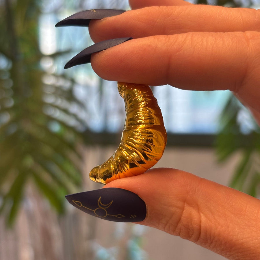 Indulge in the perfect blend of fashion and food with this Gold and Silver Croissant Brooch—delightful accessories for pastry lovers and trendsetters alike! Designed with a realistic croissant shape and textured detailing, these metallic pins add a quirky yet elegant touch to any outfit.