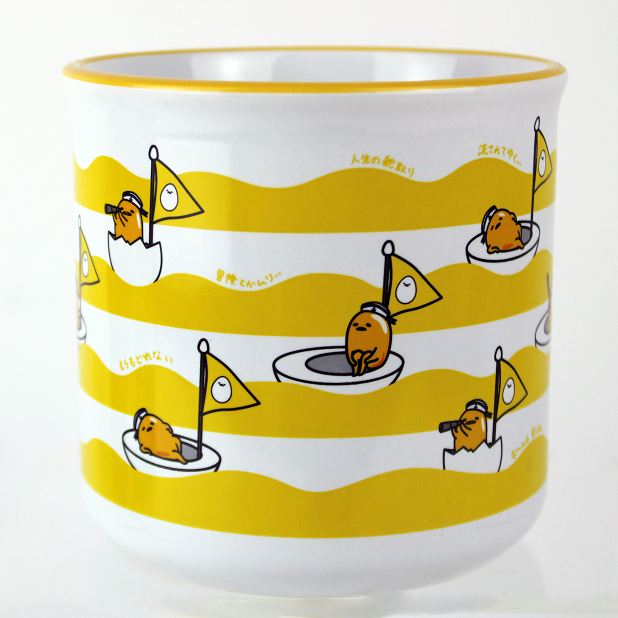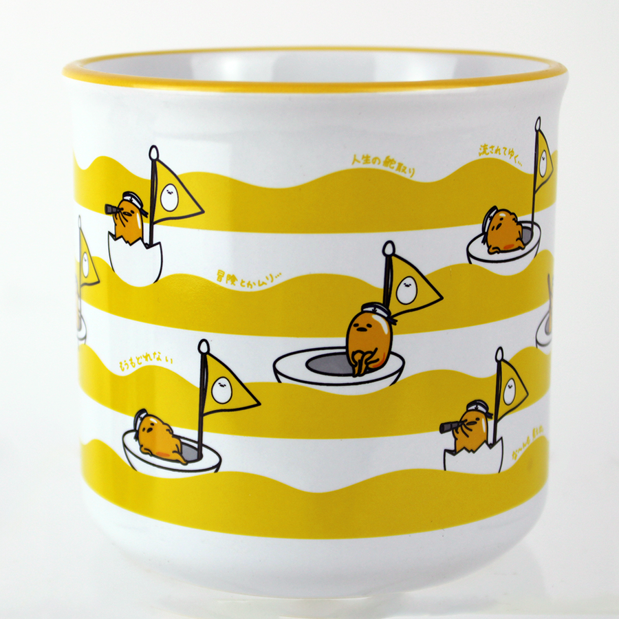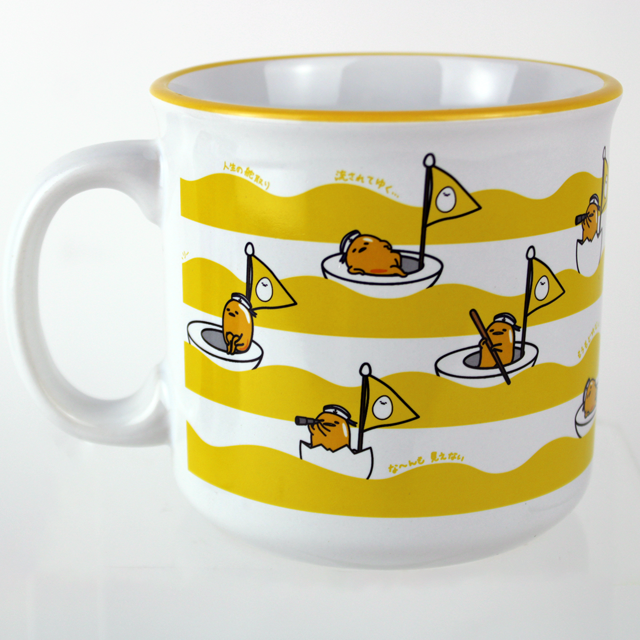 Sip in style with the Gudetama 'Egg Boat' Sanrio Camper Ceramic Mug. This quirky mug features the lazy egg character lounging on a boat, adding a playful touch to your daily coffee or tea routine. With a 20oz capacity, it's perfect for those who need a little extra pick-me-up in the morning.