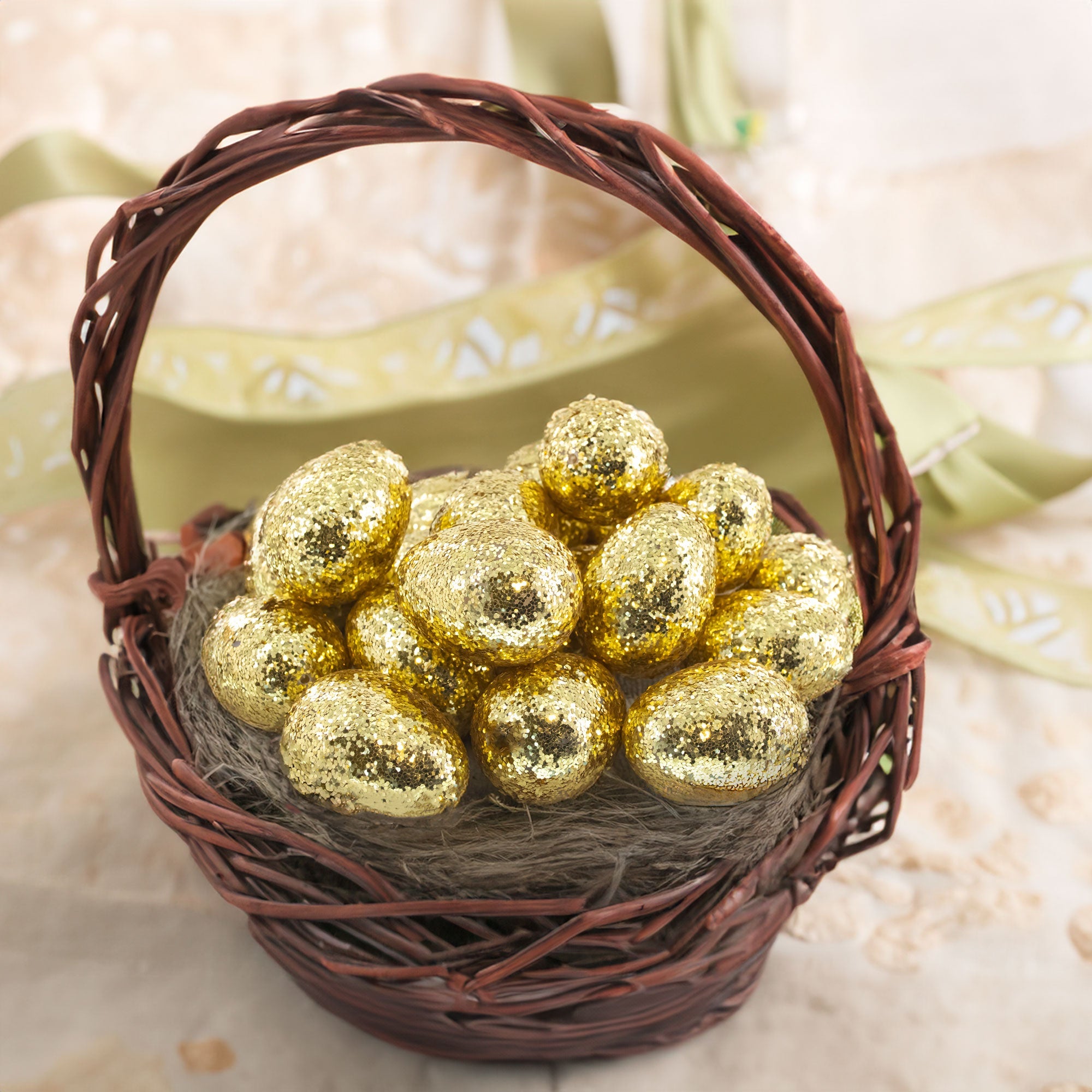 Set of 20 Gold Glittered Fillable Plastic Easter Eggs 2.25 Inches