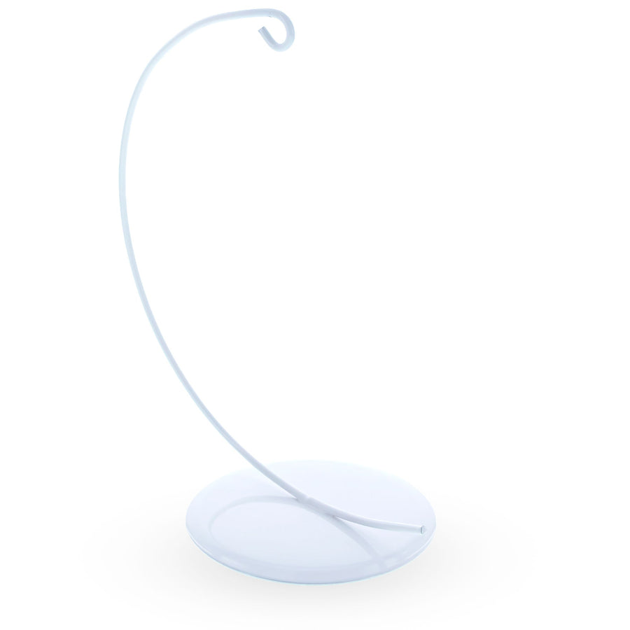 Showcase your favorite ornaments with elegance and simplicity using this 7.8-inch crescent-shaped display stand. Crafted from sturdy metal with a shiny white paint finish, it features a gracefully curved arm and a hand-hammered base that adds artisanal character.