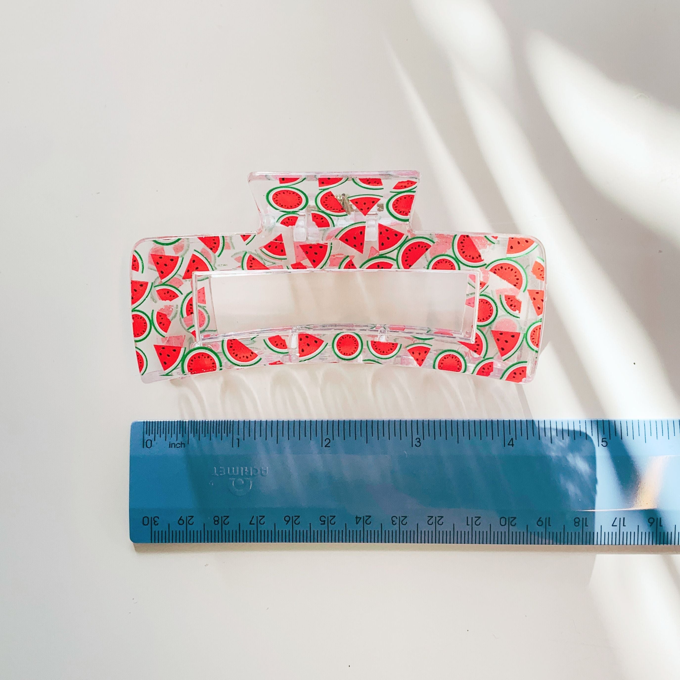 Get ready to spice up your hairstyle with cute sliced watermelons embellishing this beautiful hair claw!