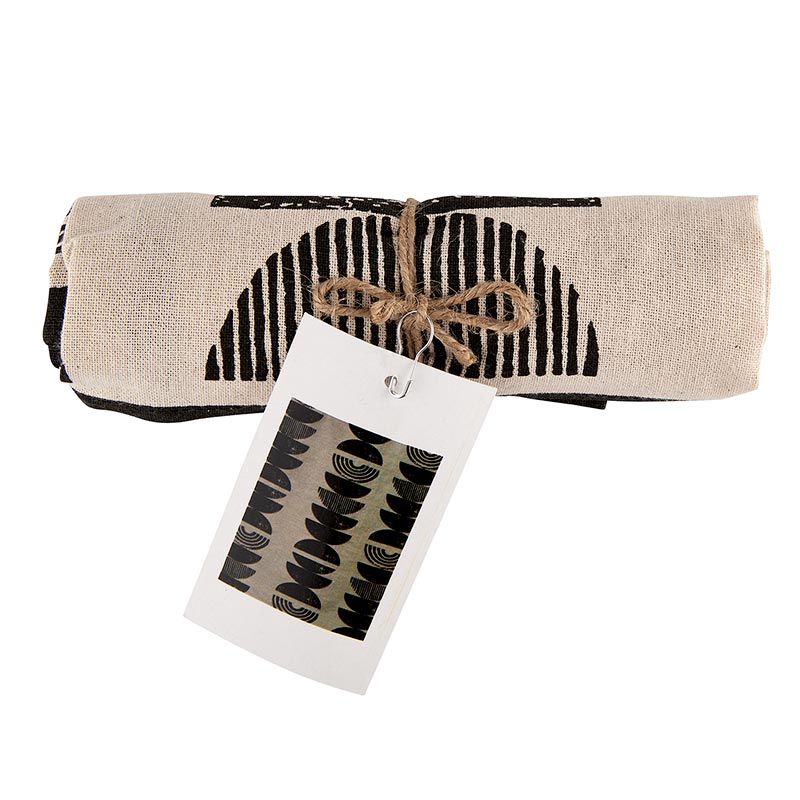 Brighten up your kitchen with this 100-percent cotton tea towel featuring a modern half circle design in black on tan. Generously sized at 18" x 28", it's perfect for keeping your kitchen clean while adding a touch of style. Makes a thoughtful gift for housewarmings, bridal showers, or any occasion where a unique and practical gift is appreciated. Santa Barbara Design Studio's kitchen tea towel is a versatile and absorbent essential for any baker or cook. The cool illustration and minimalist design make it a stylish addition to any kitchen or bathroom. Give the gift of practical elegance with this sturdy and modern dish towel, perfect for everyday use or special occasions.