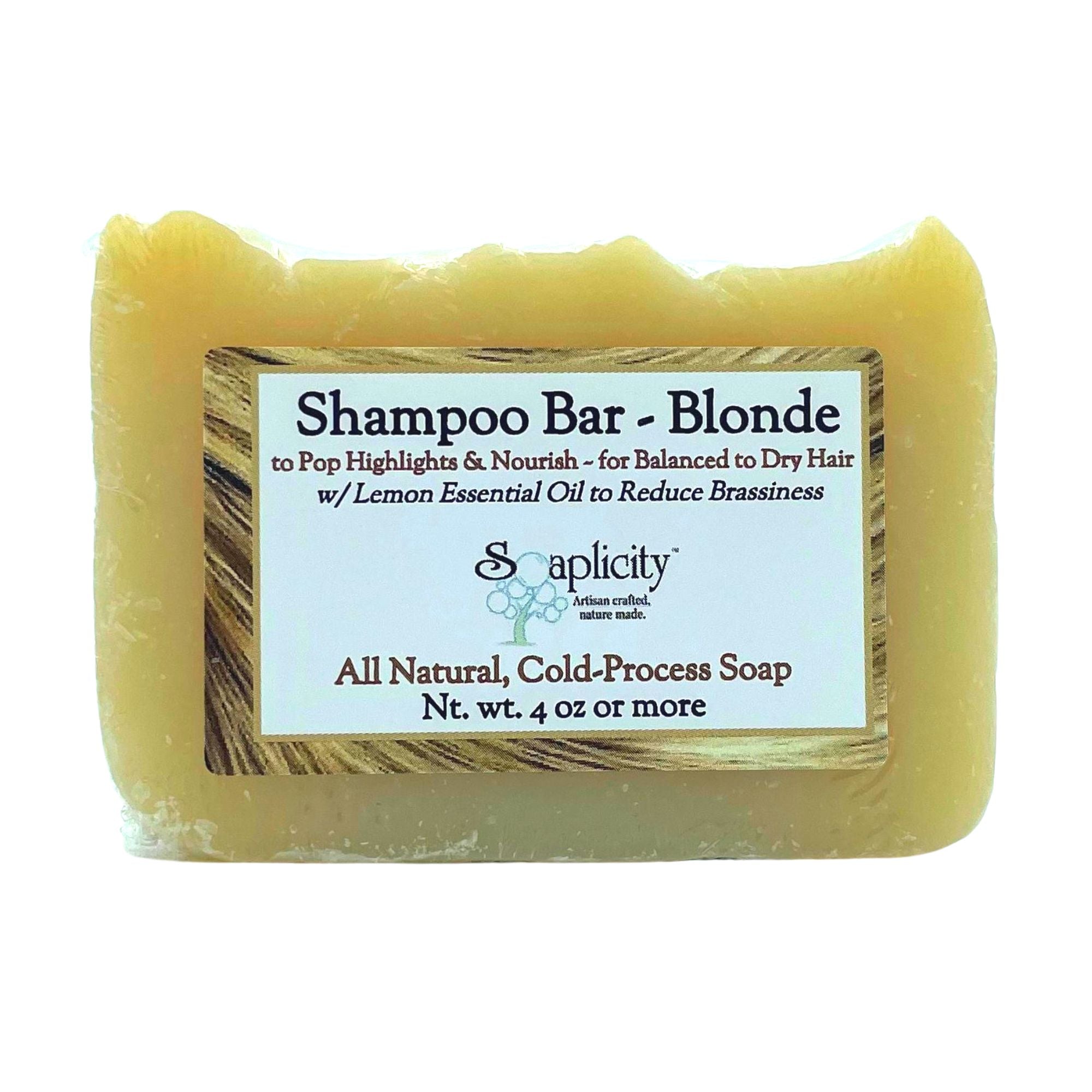 Blonde is an all-natural shampoo bar (no parabens or sulfates) that gently cleanses your hair, while restoring strength and adding unbelievable shine and body. Key essential oils of Chamomile & Lemon help to bring out highlights and add fantastic body & shine. Macademia Nut Oil prolongs hair coloring. Botanical oils and butters reduce the amount of product you need on your hair over time. The scent is light and natural. Once you try them, you will never want to go back to liquid shampoos! Can be used on any color of hair to bring out natural highlights.