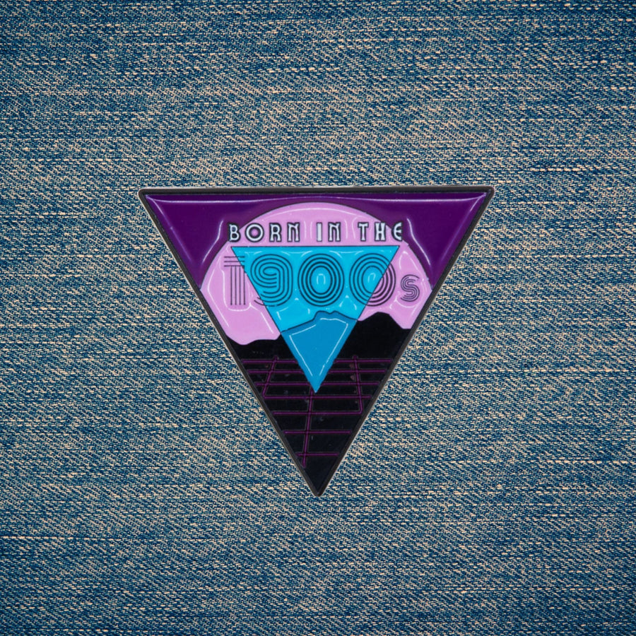 Die cut soft enamel pin reads BORN IN THE 1900s and has some totally radical 80s vibes!