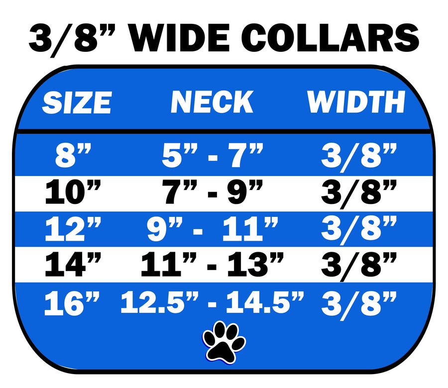 Be sure to use our sizing chart to get the perfect fit! If your pet's neck measures between sizes, always size up for safety!