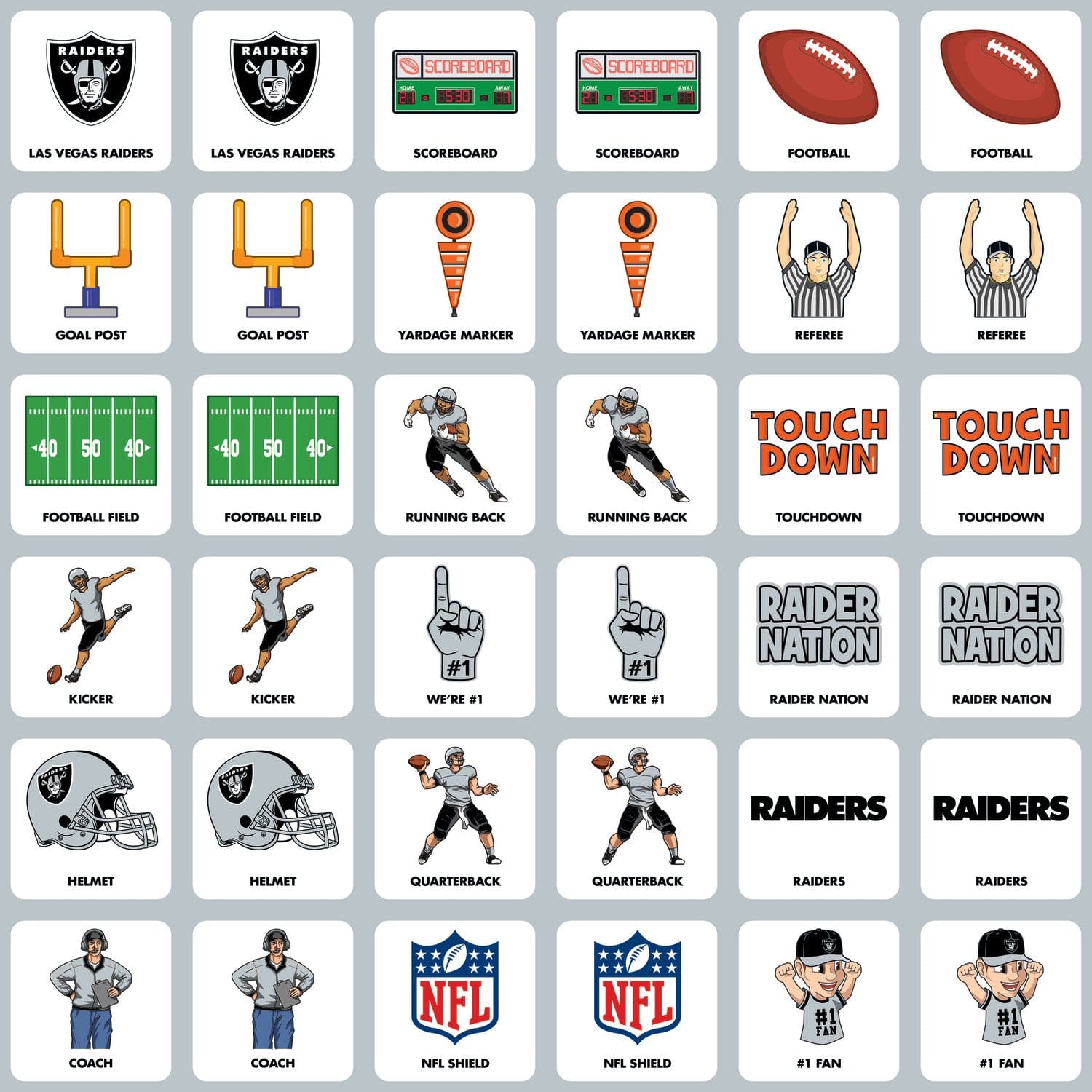 Looking for a fun way to spend some time with the family? Look no further than the NFL Las Vegas Raiders Matching Game. This exciting game puts a sports spin on the classic matching game, and is perfect for children, adults, and families of all ages. With 18 unique pairs of symbols, it's sure to keep you entertained for hours on end. Plus, the officially licensed NFL picture cards are made with high-quality stock for durability and lasting enjoyment. So grab a partner and get ready to test your memory and sports knowledge with the NFL Las Vegas Raiders Matching Game!