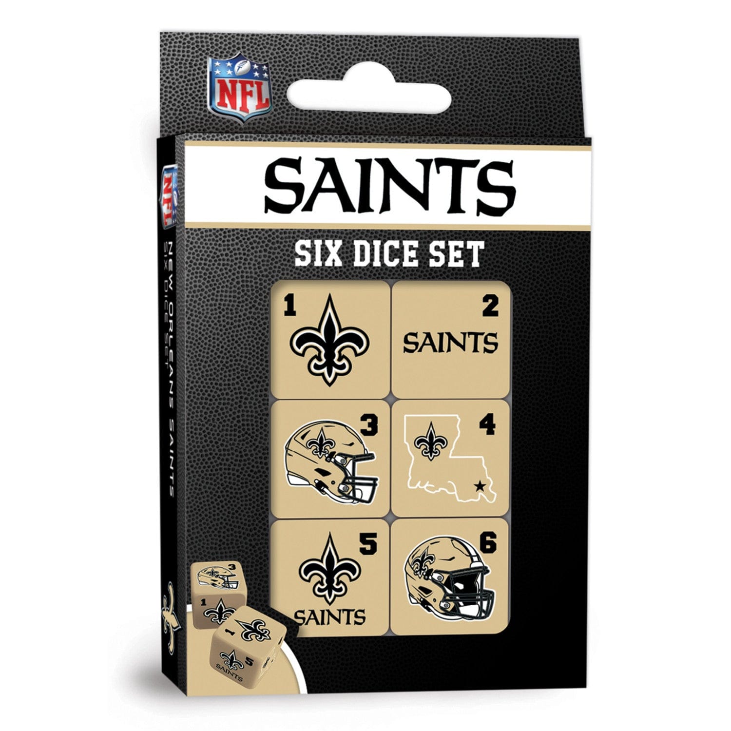 Elevate your game day experience with the MasterPieces Game Day NFL New Orleans Saints Dice Set. This 6-piece set, featuring the iconic team logo, is perfect for sports fan games and a must-have for any New Orleans Saints enthusiast. Crafted by Masterpieces, these standard-sized D6 dice are designed for both adults and teens, making them an ideal addition to your game night. The dice come in vibrant team colors, showcasing your team spirit in style. With dimensions of 3.5 inches in height, 2.5 inches in length, and 0.75 inches in width, they are compact and easy to carry, fitting seamlessly into any game collection. The hexahedron shape ensures a fair roll every time, enhancing your gaming experience. Whether you're playing a classic dice game or creating your own, these dice are versatile and fun. The set is unisex, making it a great gift for any Saints fan. No batteries are required, ensuring endless hours of entertainment. The lightweight design, weighing just 0.063 kilograms, makes it easy to transport to tailgates, parties, or any gathering. As part of the NFL league, this dice set is a fantastic way to show support for your favorite team. Pair it with other NFL-themed games like the Dallas Cowboys dice set or the Raiders dice set for a complete collection. Perfect for fans who enjoy the thrill of the game, this dice set is a unique way to celebrate your team.