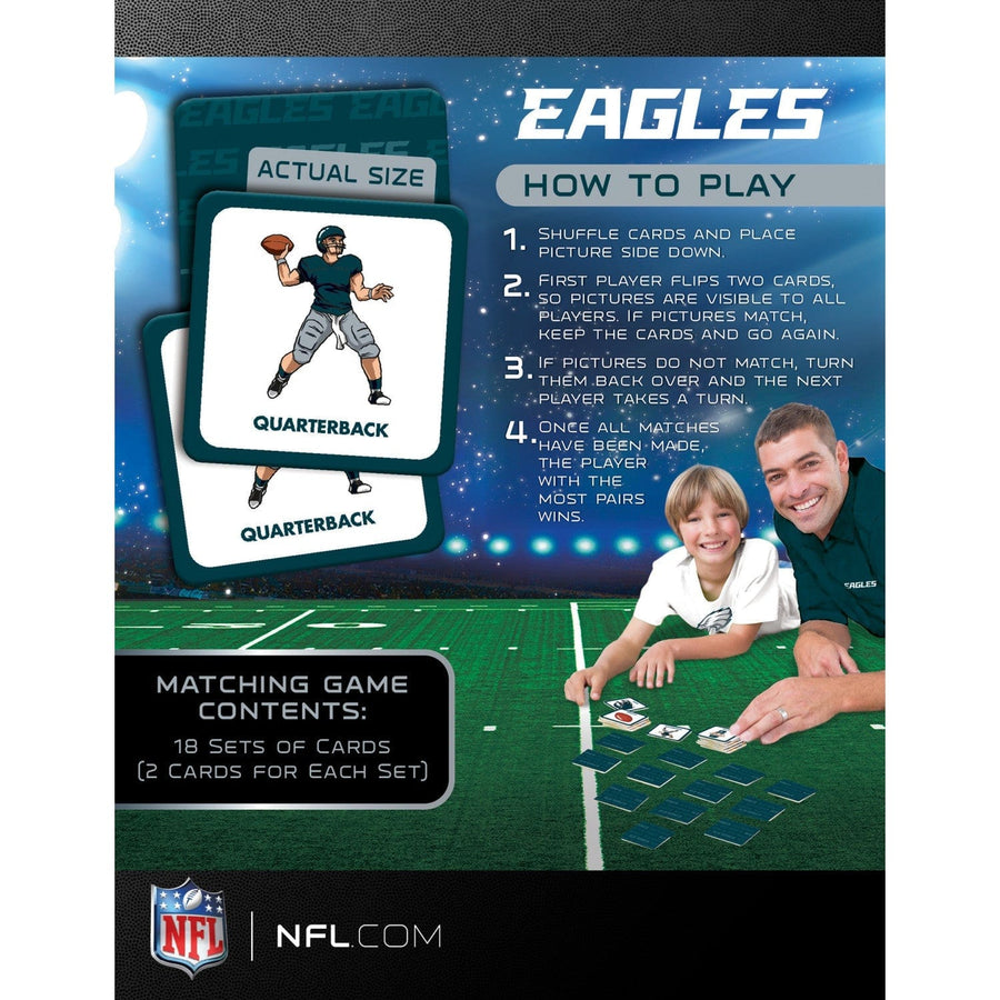 Bring the excitement of NFL game day to your family with this officially licensed Philadelphia Eagles matching game, designed for kids ages 3 and up. Featuring 18 unique pairs of symbols inspired by the Philadelphia Eagles, this matching game encourages memory skills and team spirit, making it a perfect Philadelphia Eagle birthday gift or addition to your collection of NFL board games. The compact size (7 x 6 x 6 inches) and lightweight design make it easy to take on the go, whether you’re heading to a tailgate or family gathering. Crafted from durable paper and finished in team colors, this NFL matching game is a fun way for young fans to connect with their favorite team. As part of the Masterpieces brand, known for quality sports fan games and NFL toys, this game is a great choice for family game nights or as a thoughtful gift for Eagles fans. No batteries required and safe for young children, it’s a must-have for any NFL enthusiast looking to add to their collection of NFL board games or searching for a unique Philadelphia Eagle playing cards alternative.