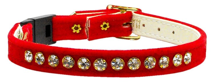 Premium Cat Breakaway Collar, "Velvet One Row Rhinestone"