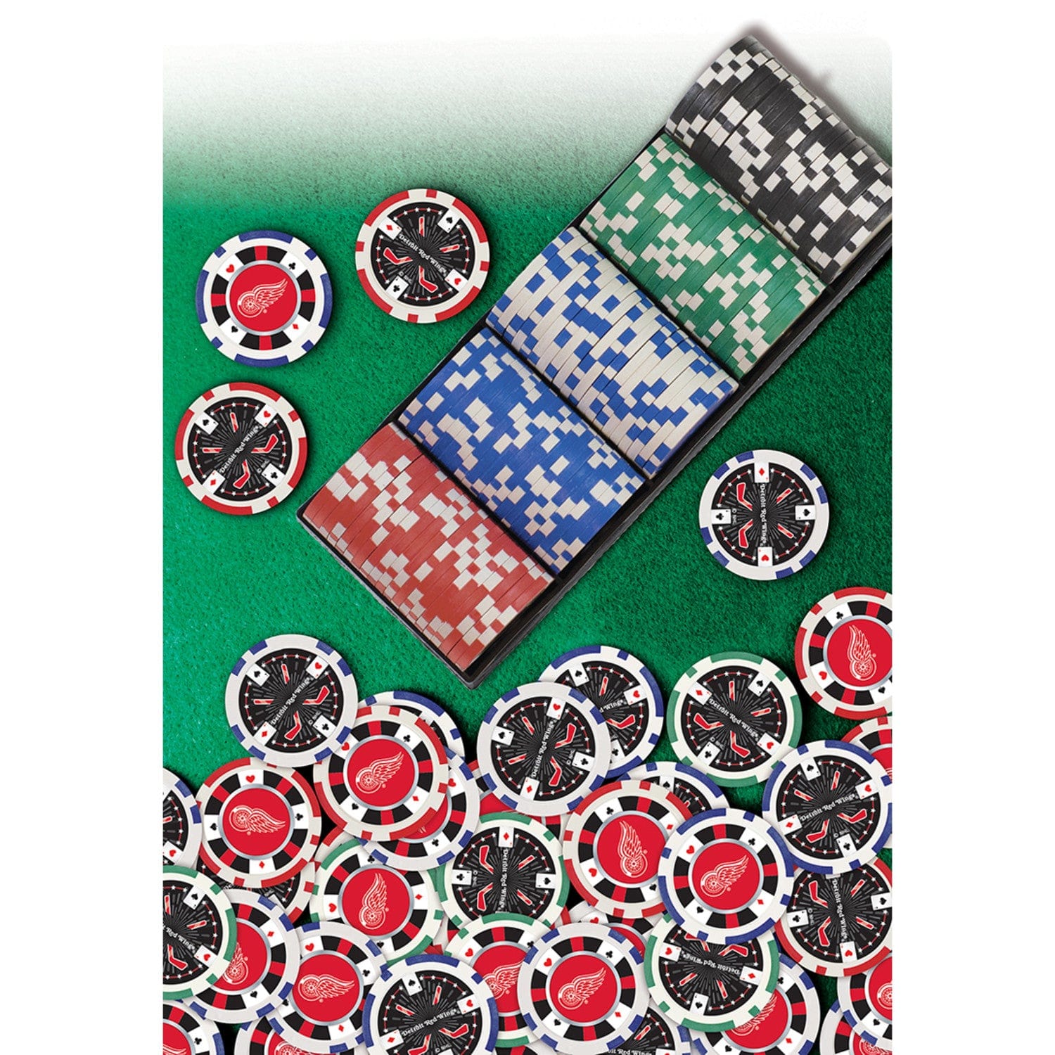 Looking for a great way to support your favorite team? Look no further than these MasterPieces officially licensed NHL Detroit Red Wings 124 Piece Casino Style Poker Chips! These heavy 11.5-gram casino-style poker chips are perfect for Texas Hold'EM, Blackjack, and other card games. The set contains 100 chips in a black tray, each with two team designs. Whether you're playing for fun or in a tournament, these officially licensed poker chips are the perfect choice for all fans of the Detroit Red Wings. Show your team pride, win in style, and always play with your teams Poker Chips!