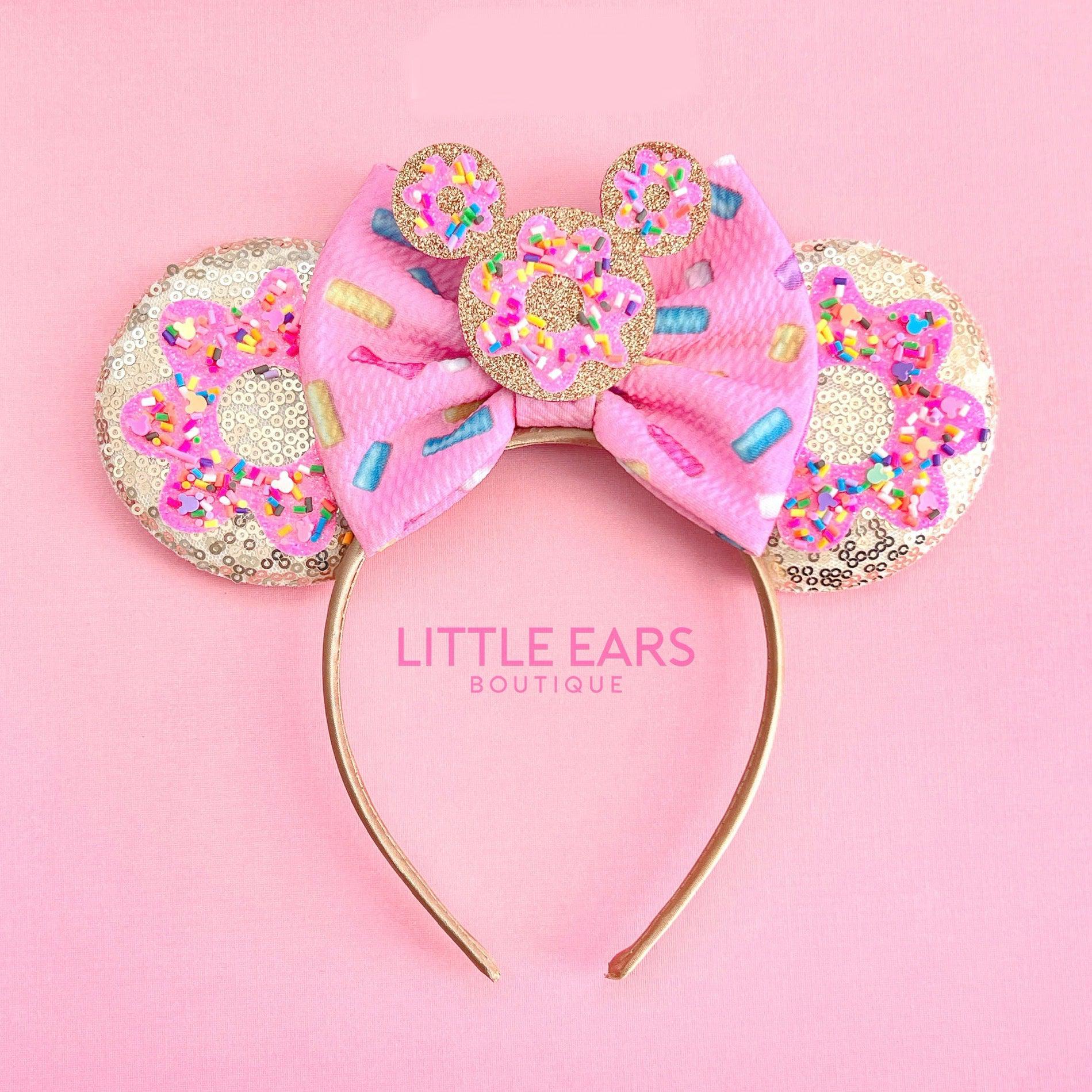 SIZE AND COLORThe size of the ears measures between 9-11 inches, and the bows are about 5 inches.