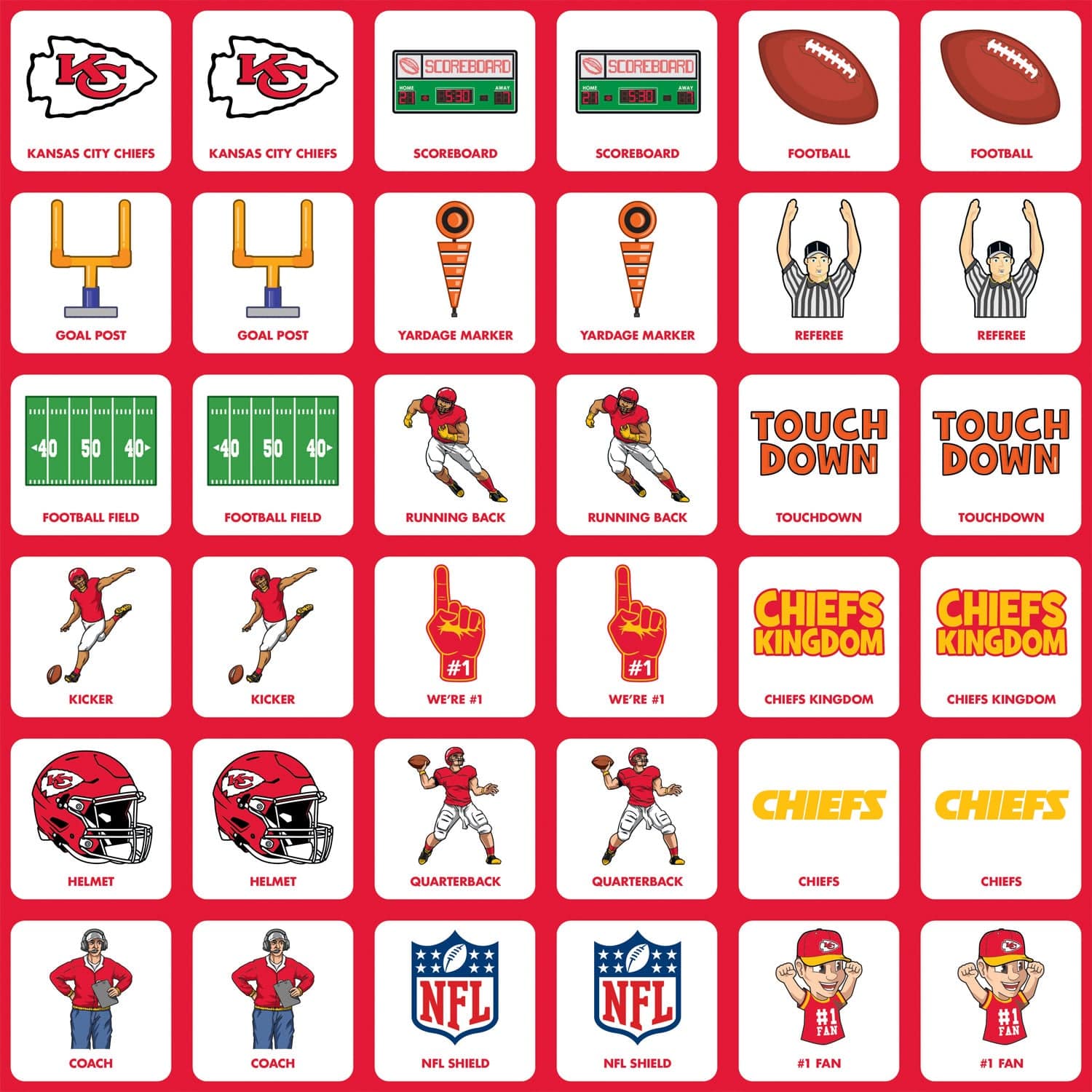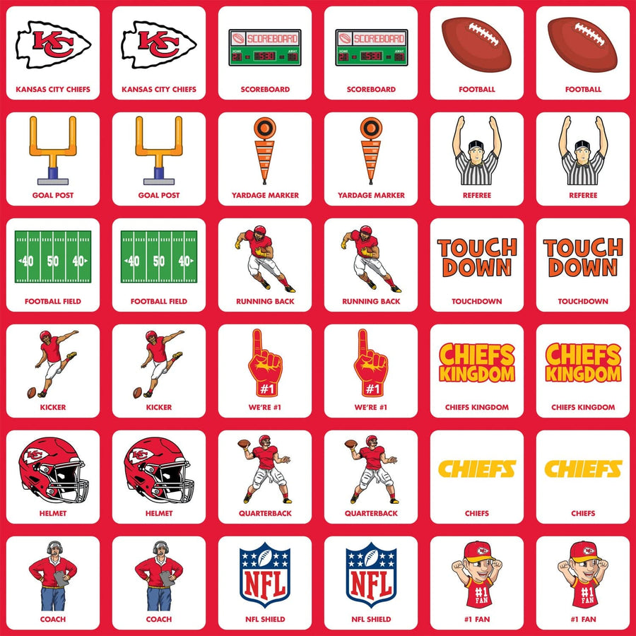 Unleash the excitement of game day with the Masterpieces Officially Licensed NFL Kansas City Chiefs Picture Matching Card Game, perfect for kids and families. This engaging sports-themed memory game is designed for ages 3 and up, making it an ideal Kansas City Chiefs gift for kids. The game features vibrant team colors and iconic imagery, allowing fans to test their memory skills while celebrating their favorite NFL team. Crafted from durable cardboard, this matching game is both lightweight and portable, with dimensions of 8.25 x 6.25 x 6.25 inches, making it easy to take on the go. Whether you're hosting a Kansas City Chiefs party or looking for fun Kansas City Chiefs party favors, this game is a fantastic addition to any fan's collection. With no batteries required and no assembly needed, it's ready to play right out of the box. The Masterpieces brand ensures quality and authenticity, providing hours of entertainment for both kids and teens. This game is not only a fun activity but also a great way to introduce young fans to the world of NFL sports. Whether you're searching for Kansas City Chiefs gifts under 15 or looking to complete your collection of KC Chiefs stuff, this matching game is a must-have for any fan.