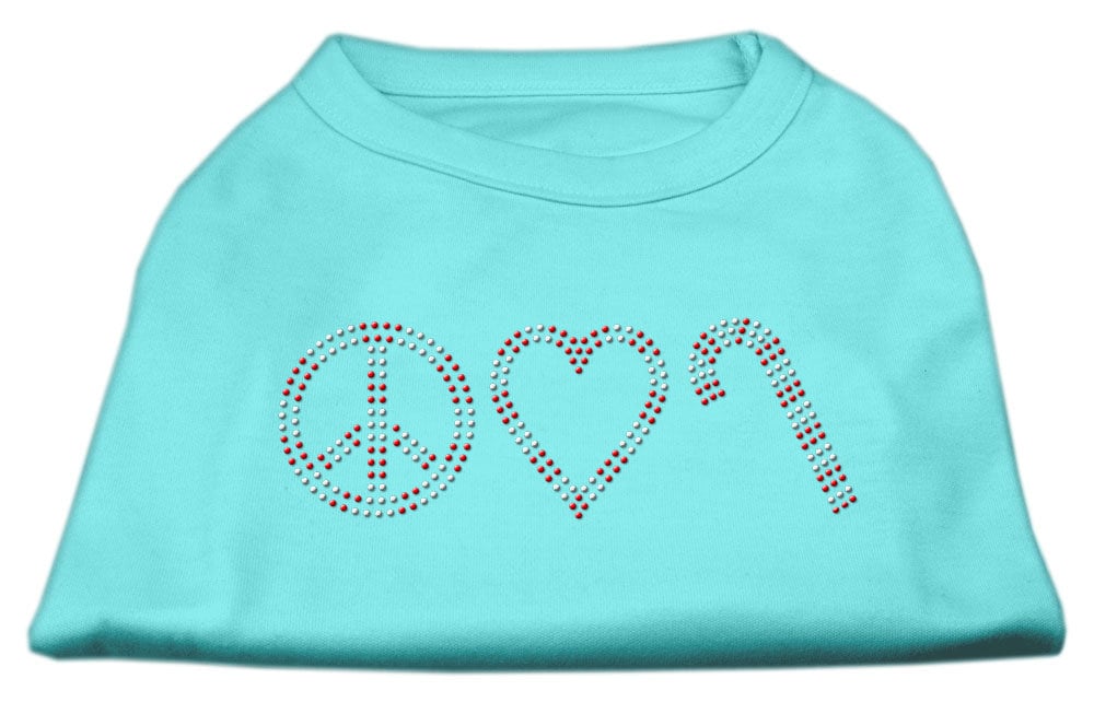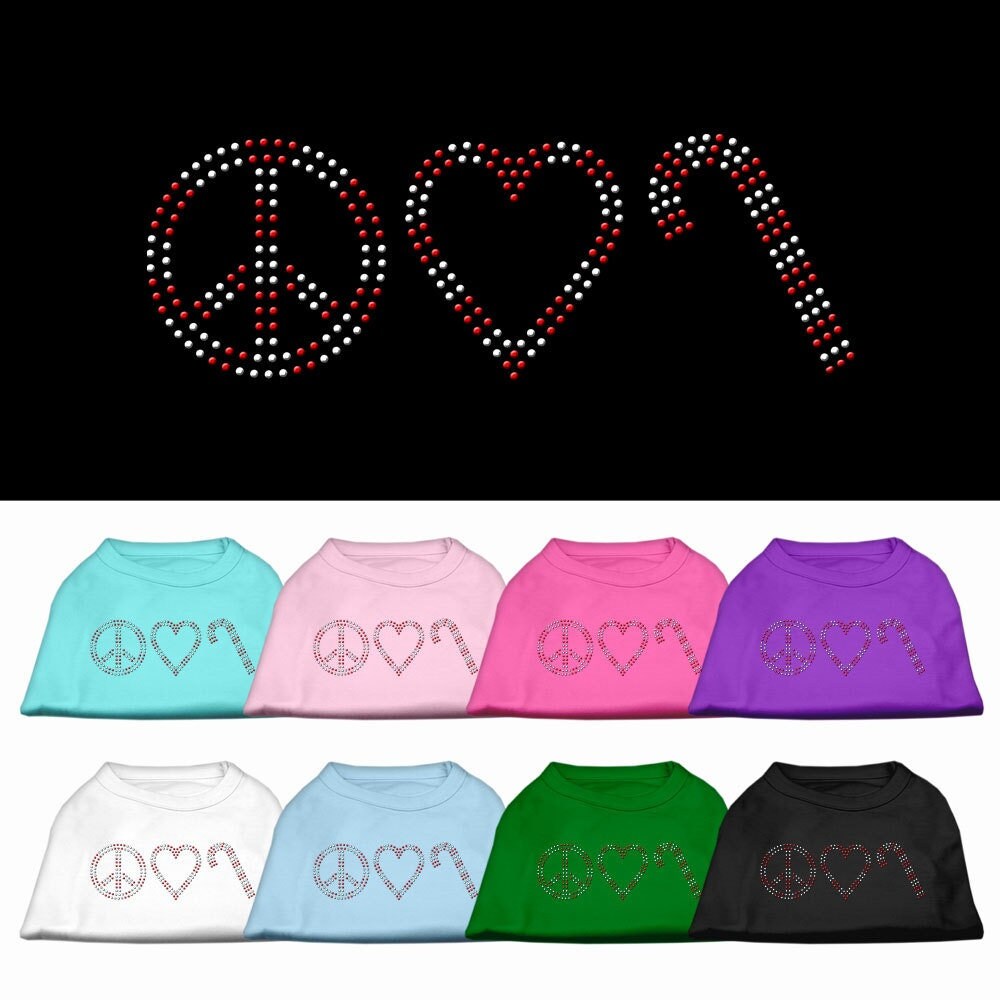 Christmas Rhinestone Studded Dog Shirt, "Peace, Love & Candy Canes"