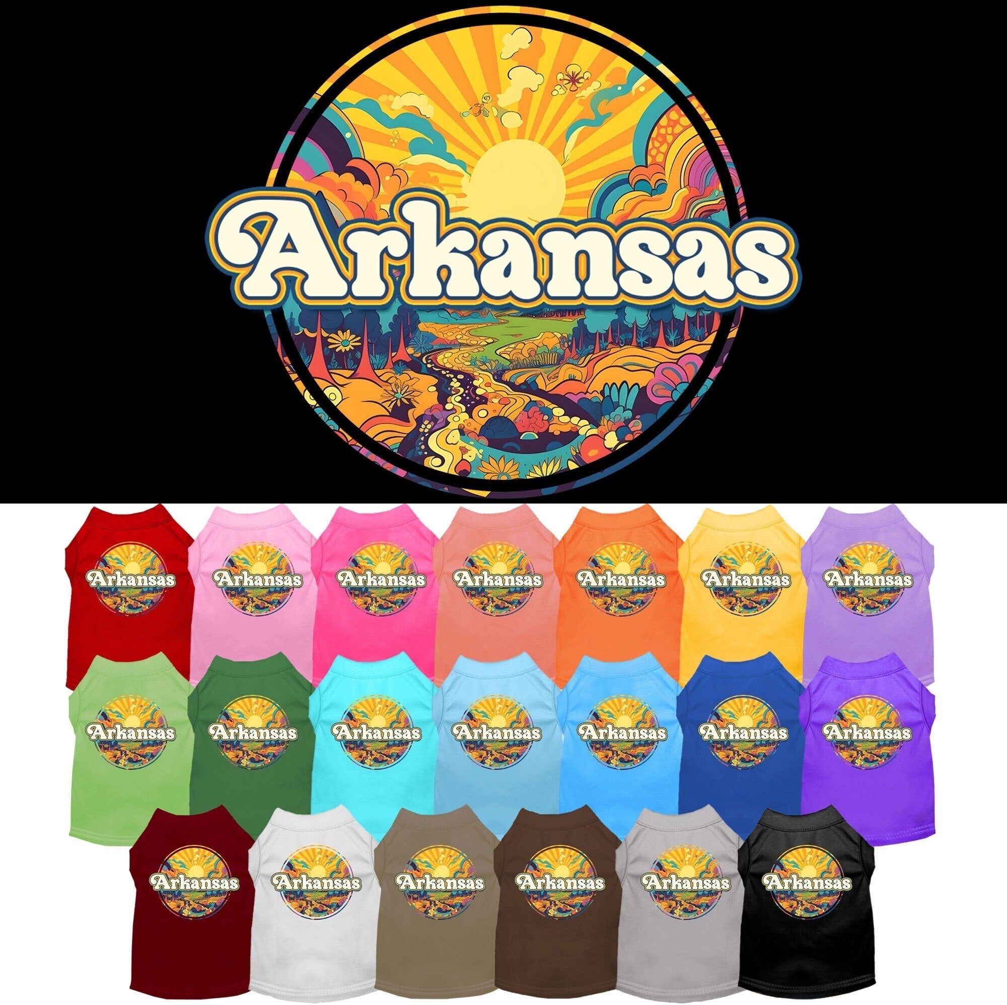 Pet Dog & Cat Screen Printed Shirt, "Arkansas Trippy Peaks"