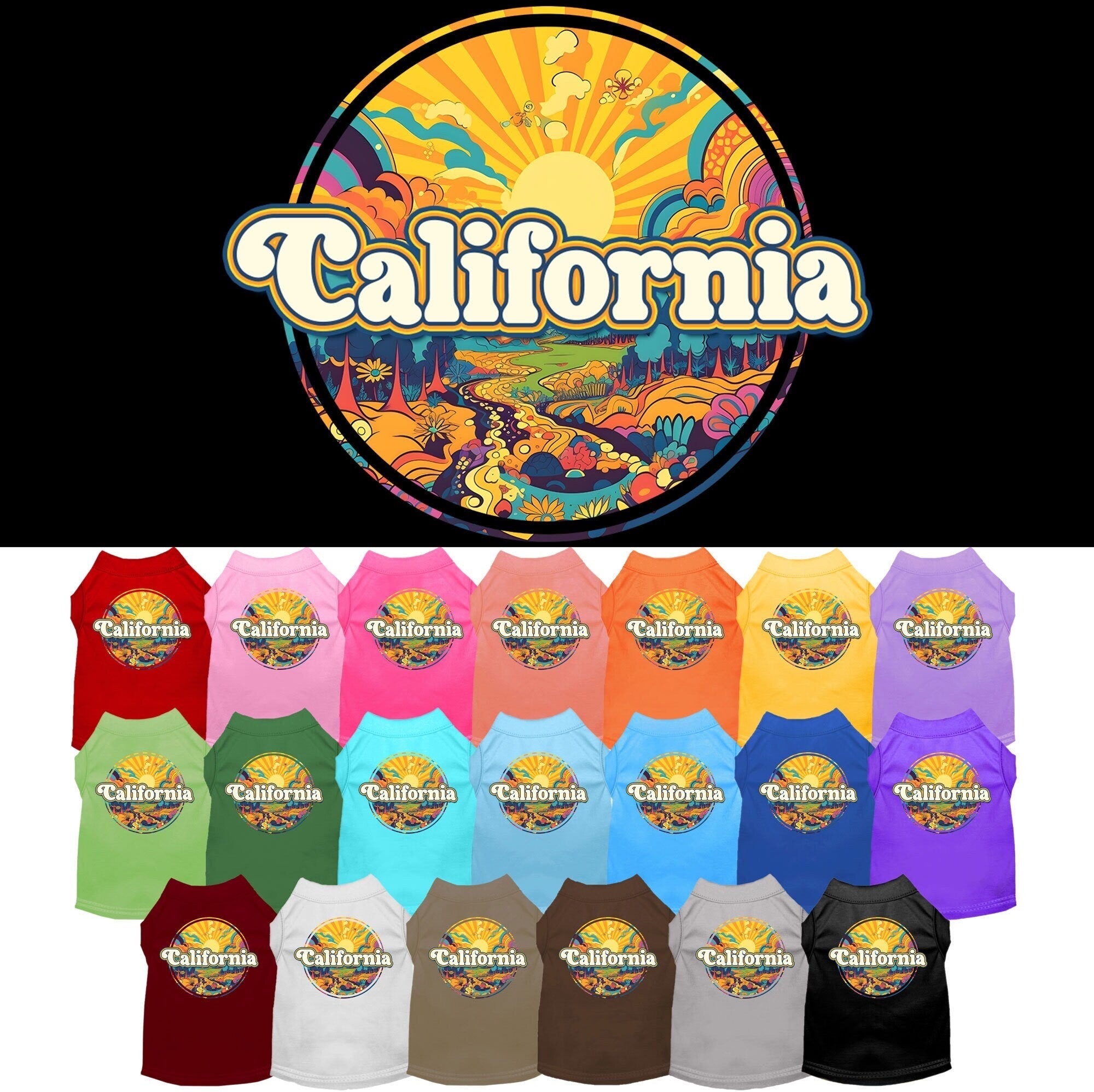 Pet Dog & Cat Screen Printed Shirt, "California Trippy Peaks"