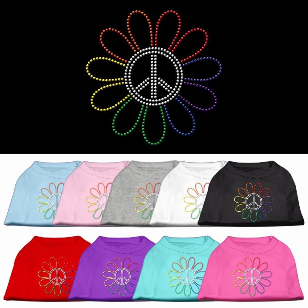 Pet Dog & Cat Shirt Rhinestone, "Rainbow Flower Peace Sign"