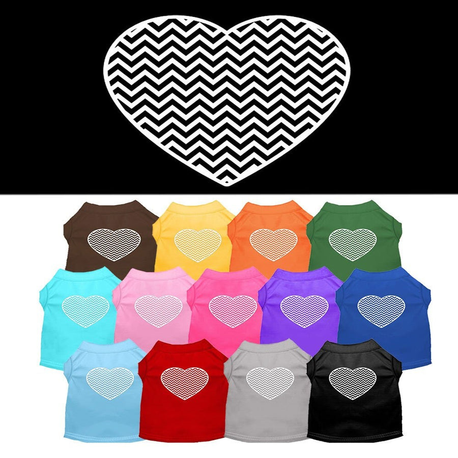 Pet Dog & Cat Shirt Screen Printed, "Chevron Heart"