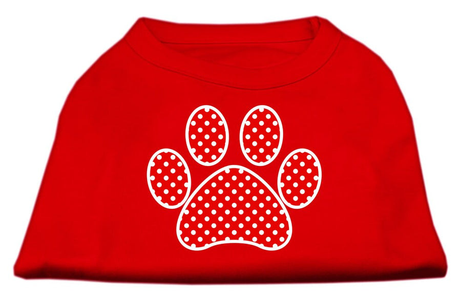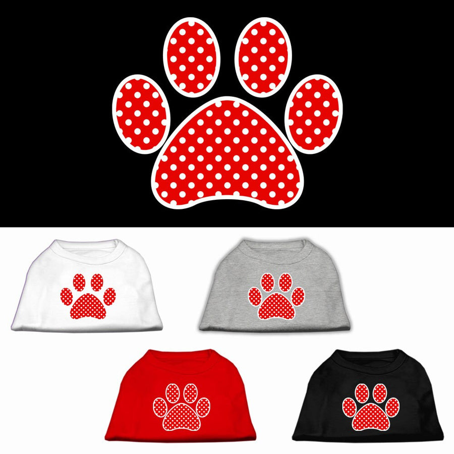 Pet Dog & Cat Shirt Screen Printed, "Swiss Dots Red Paw"