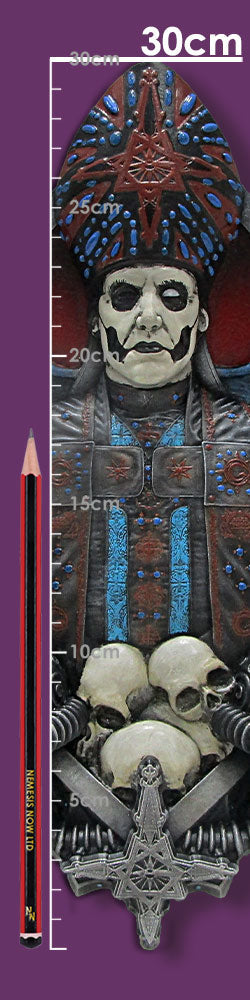 Show your devotion to the iconic figure of Papa Emeritus IV from the band Ghost with this striking Ghost Papa Emeritus IV Wall Plaque. Featuring detailed, high-quality artwork of the band's frontman in his signature ceremonial attire, this wall plaque brings the mystique and grandeur of the band into your space. The plaque's design reflects Papa Emeritus IV’s unique aesthetic and presence, capturing his enigmatic role as the leader of the "Nameless Ghouls" and the face of the band’s theatrical performances.