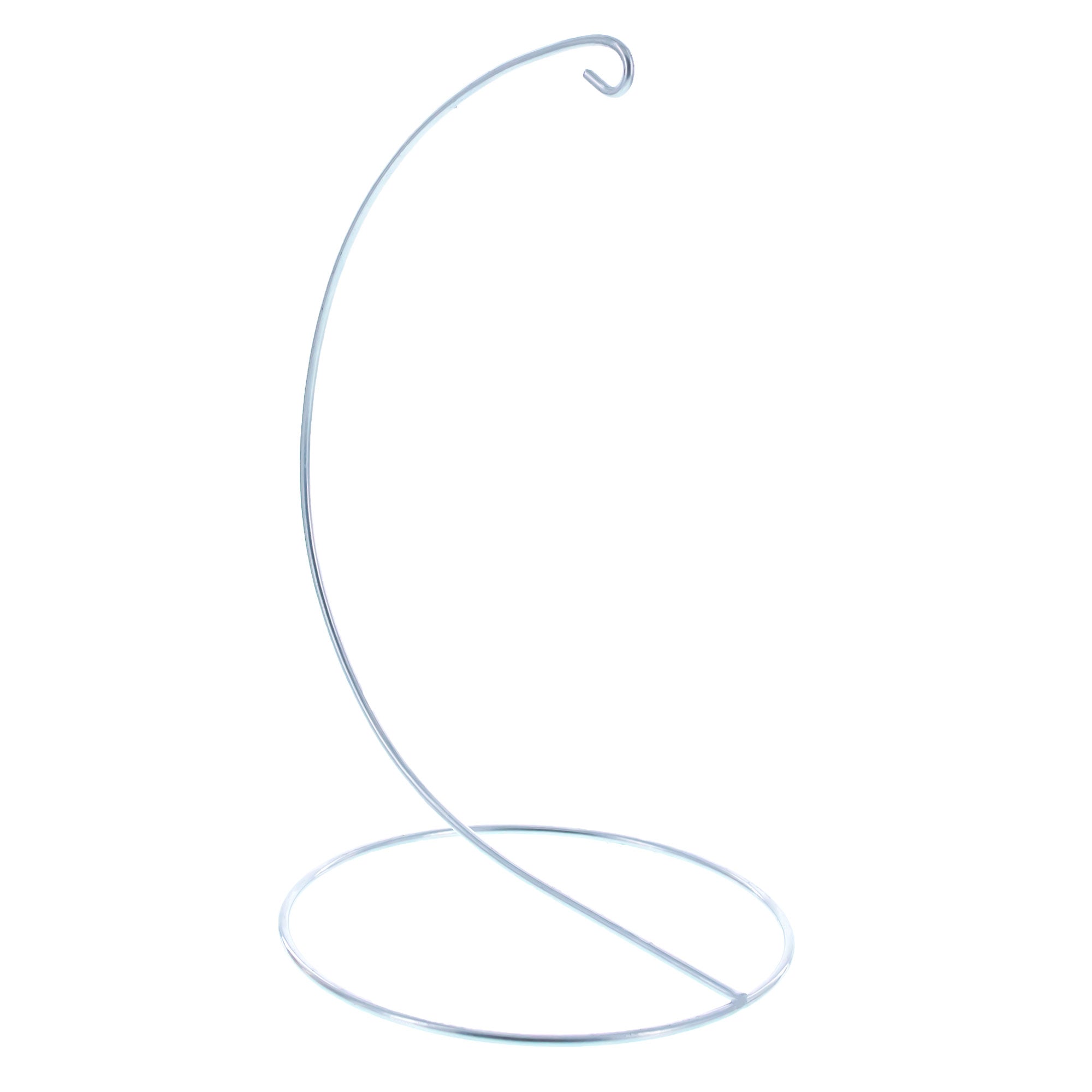 Display your ornaments with graceful simplicity using this minimalist crescent-style wire stand. Crafted from sturdy metal with a vintage chrome finish, this lightweight display stand offers an airy, open design that complements a wide range of decorative themes. Its curved silhouette securely holds hanging items while adding visual height and elegance to your display.