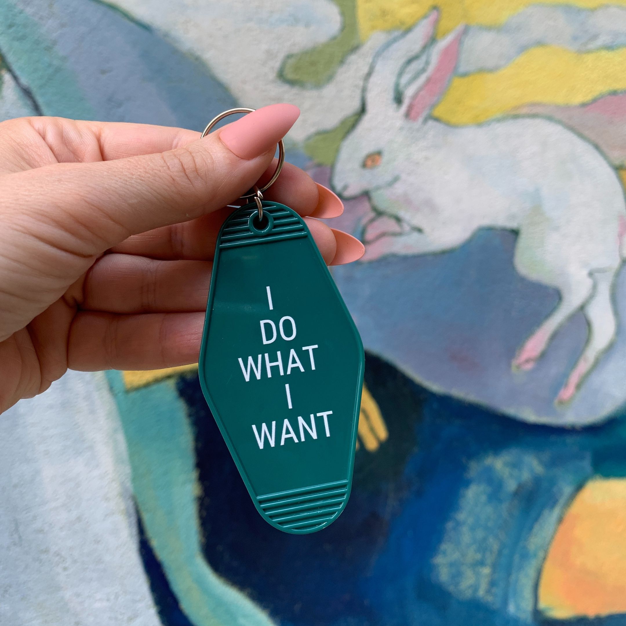 Add some attitude to your keys with the I Do What I Want Motel Style Keychain in Green. Perfect for the independent souls who march to the beat of their own drum. Makes a fun and unique gift for the free spirits in your life.