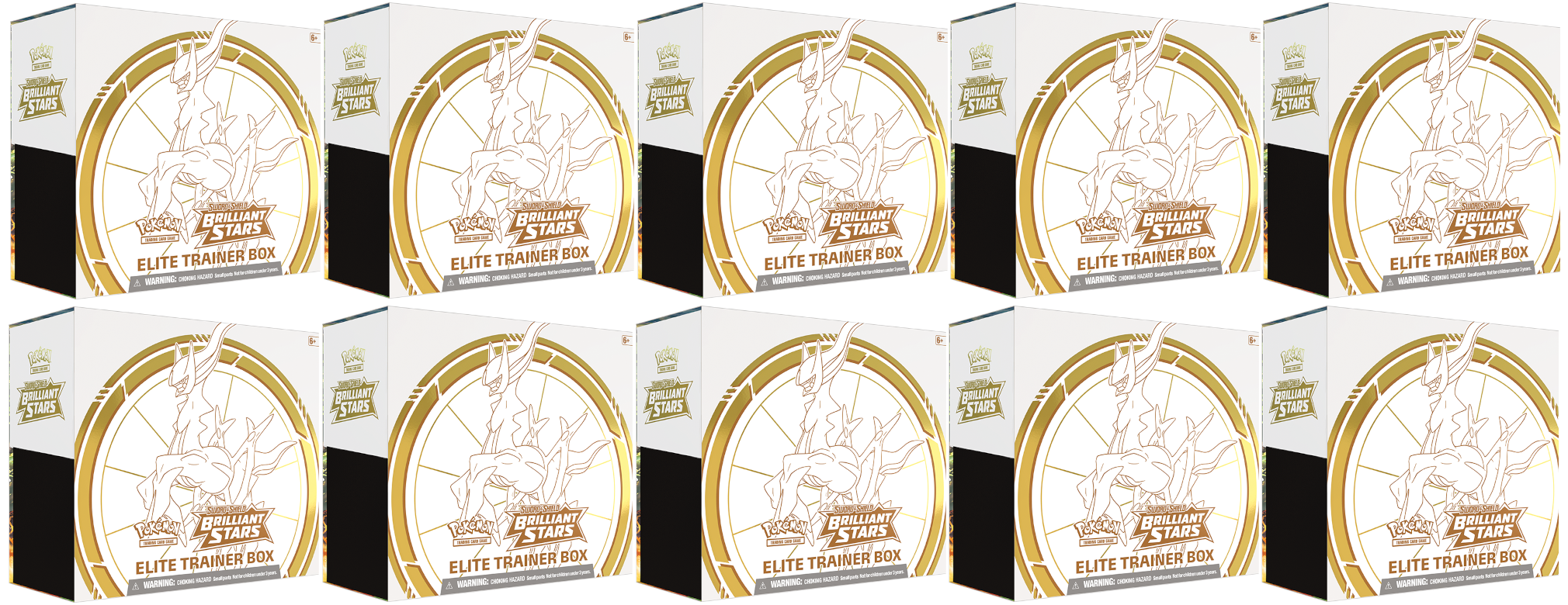 • Each Sword & Shield: Brilliant Stars - Elite Trainer Box Case contains 10 Pokémon Elite Trainer Box