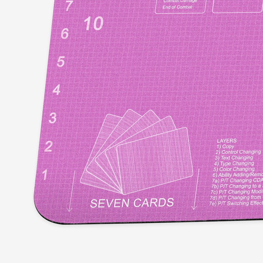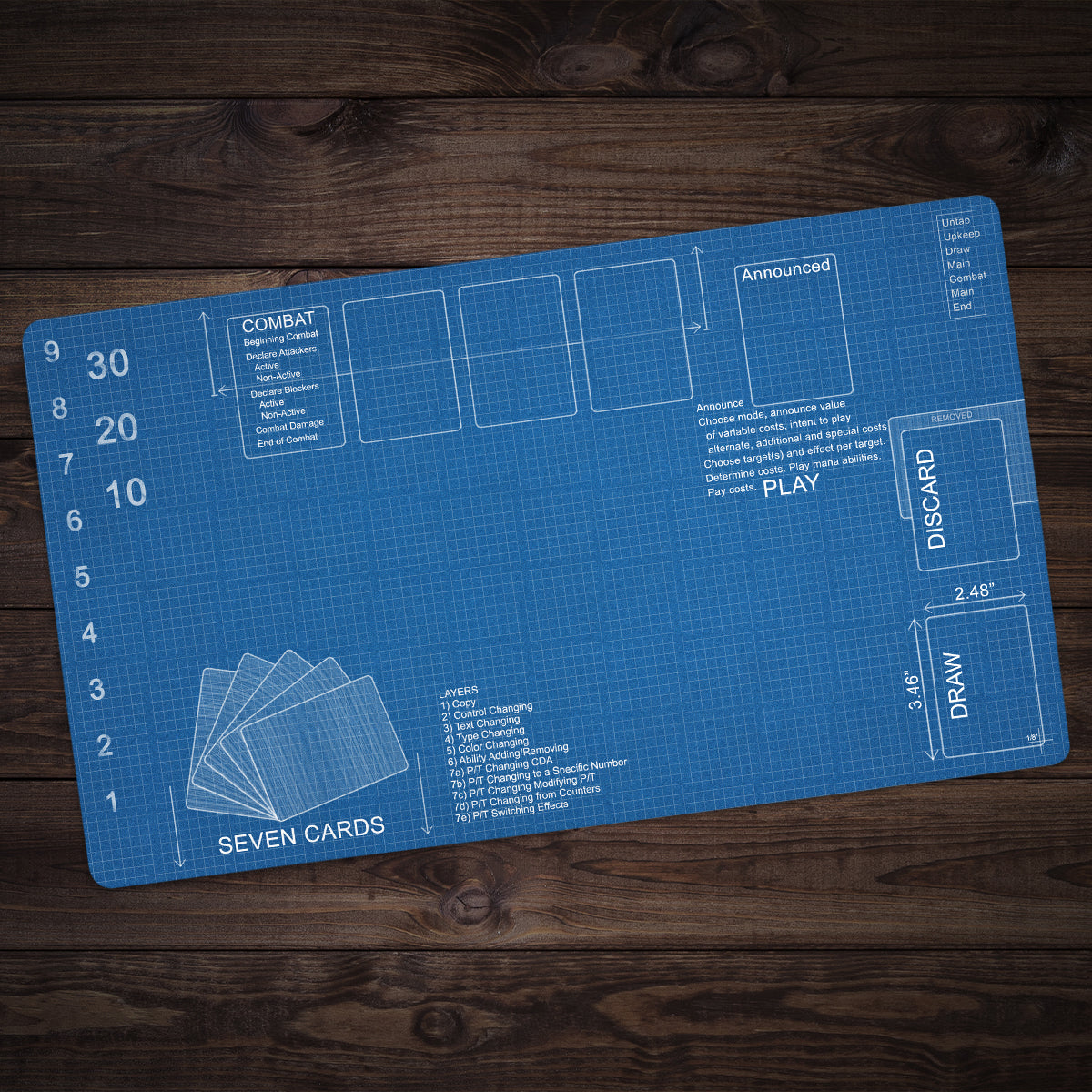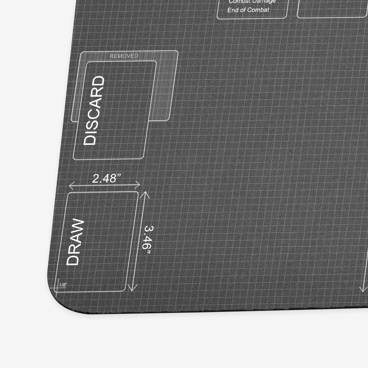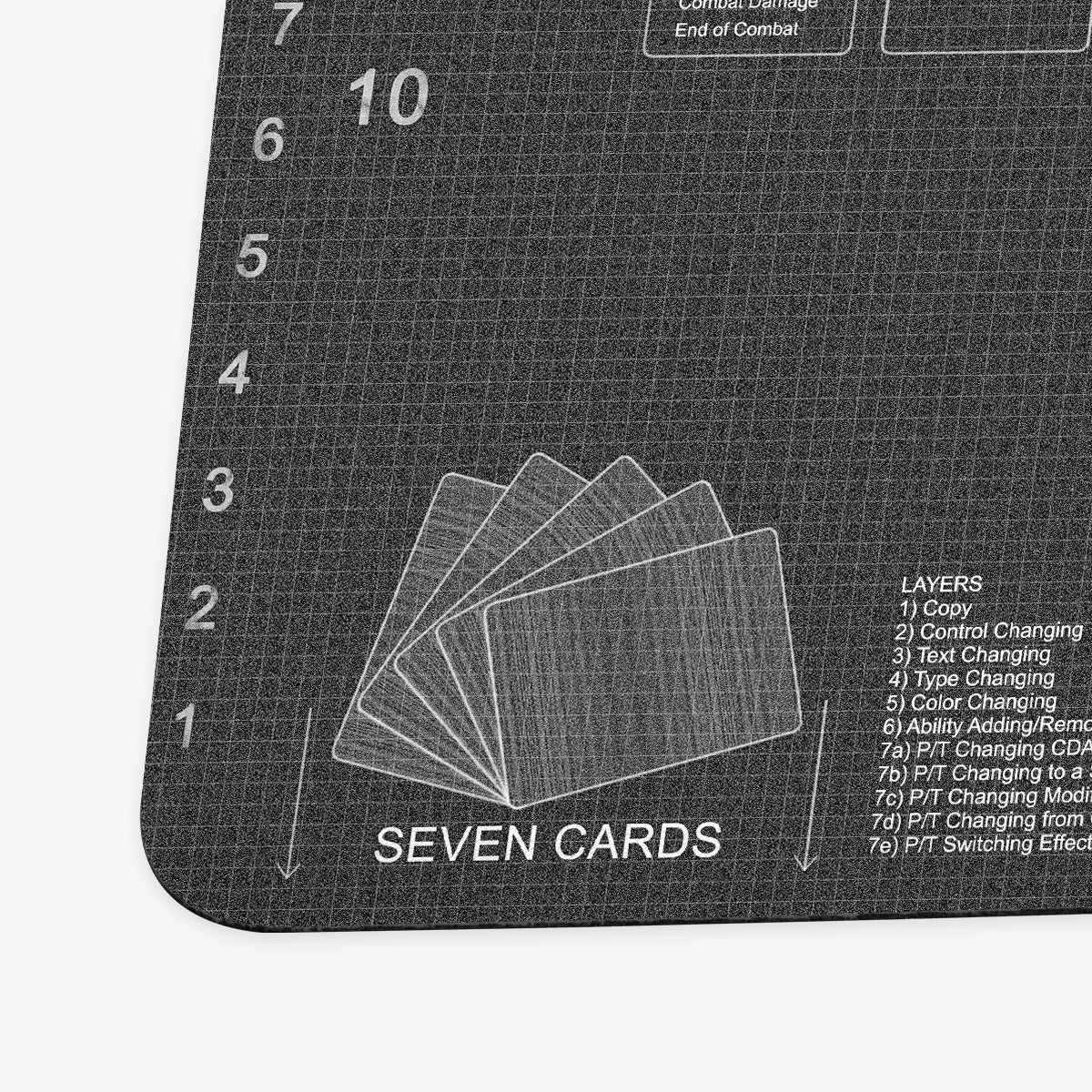 Standard Playmat measures at 24” x 14” inches and is 1/16 of an inch thick. It’s made with a smooth cloth top and strong rubber backing.