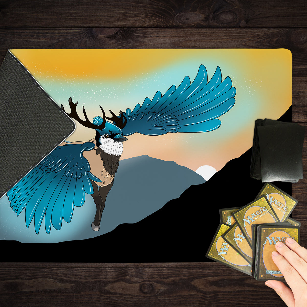 Standard Playmat measures at 24” x 14” inches and is 1/16 of an inch thick. It’s made with a smooth cloth top and strong rubber backing.