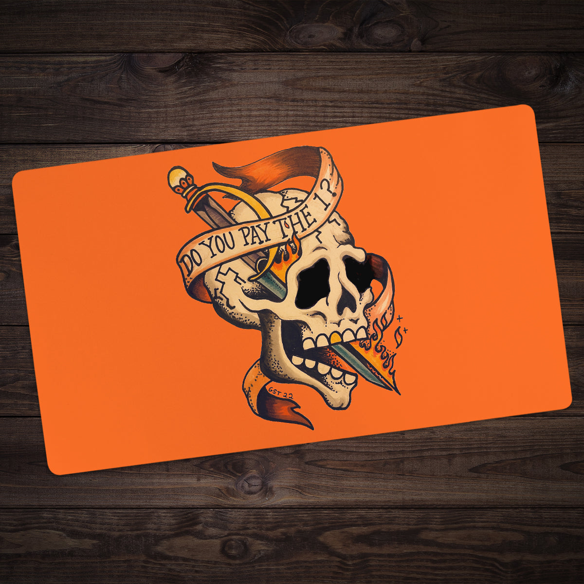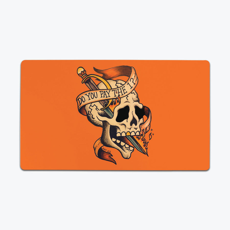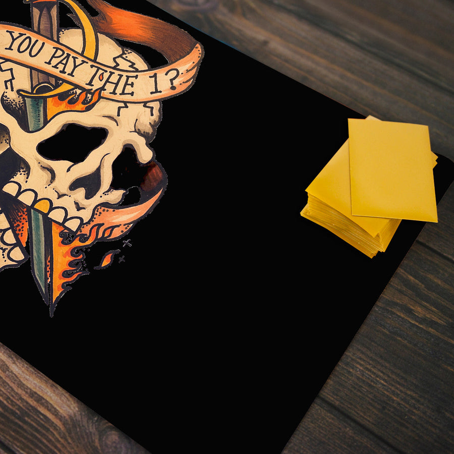 Have you been paying your taxes? Or better yet, have your opponents been paying theirs? Well, this Do You Pay the 1 playmat lets you ask everyone at the table, without having to say a word. Featuring premium materials, quality craftsmanship, and cool artwork from The Possibility Storm, this mat certainly speaks for itself. The top is made from a smooth cloth that makes card movements and management super simple. This means you longer have to slide your card to the edge of the table to pick up or flip it over during pivotal points of the game. The material is soft as well, which means you don’t have to worry about the condition of your cards/sleeves while you play. Slips and slides won’t be an issue either, thanks to the anti-slip rubber backing that we’ve put on the bottom of the mat. The firm grip of the rubber keeps your mat flat and tight on every surface.