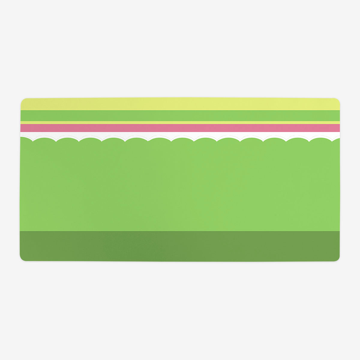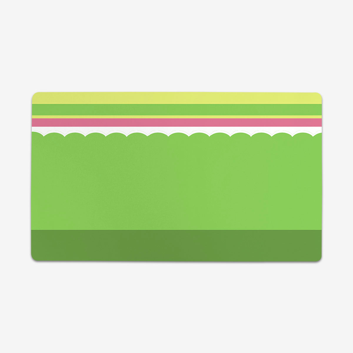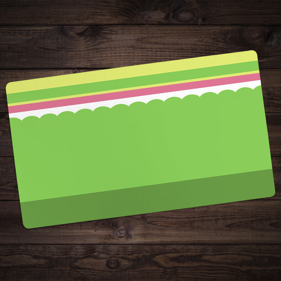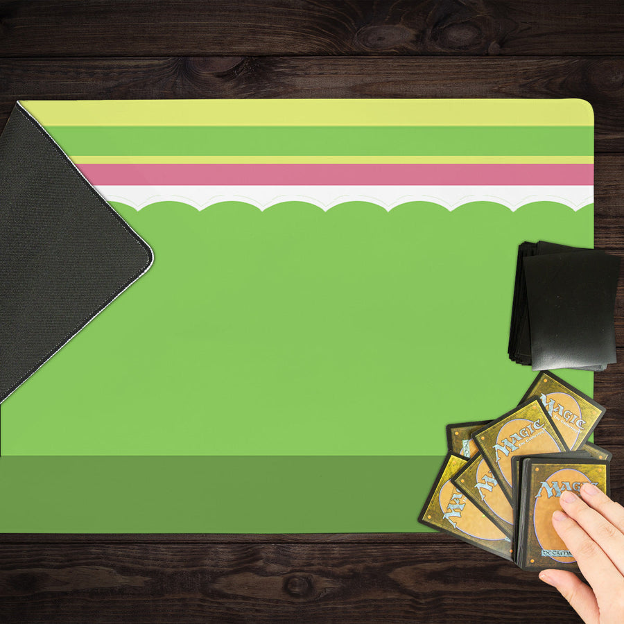 Standard Playmat measures at 24” x 14” inches and is 1/16 of an inch thick. It’s made with a smooth cloth top and strong rubber backing.