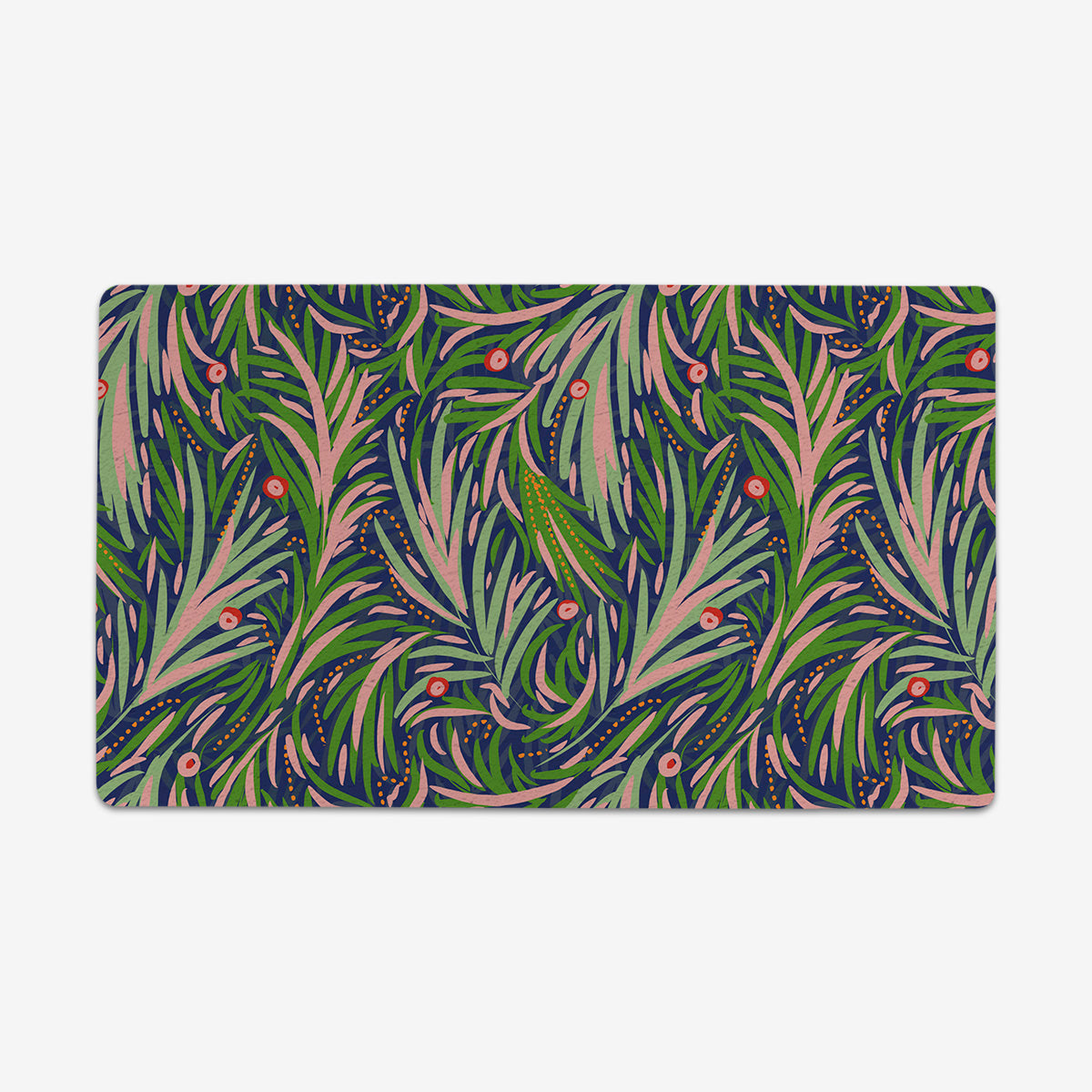 Standard Playmat measures at 24” x 14” inches and is 1/16 of an inch thick. It’s made with a smooth cloth top and strong rubber backing.