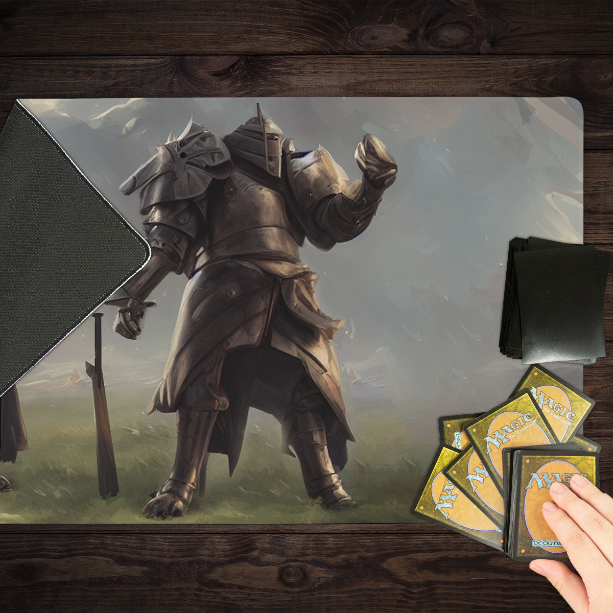 Standard Playmat measures at 24” x 14” inches and is 1/16 of an inch thick. It’s made with a smooth cloth top and strong rubber backing.
