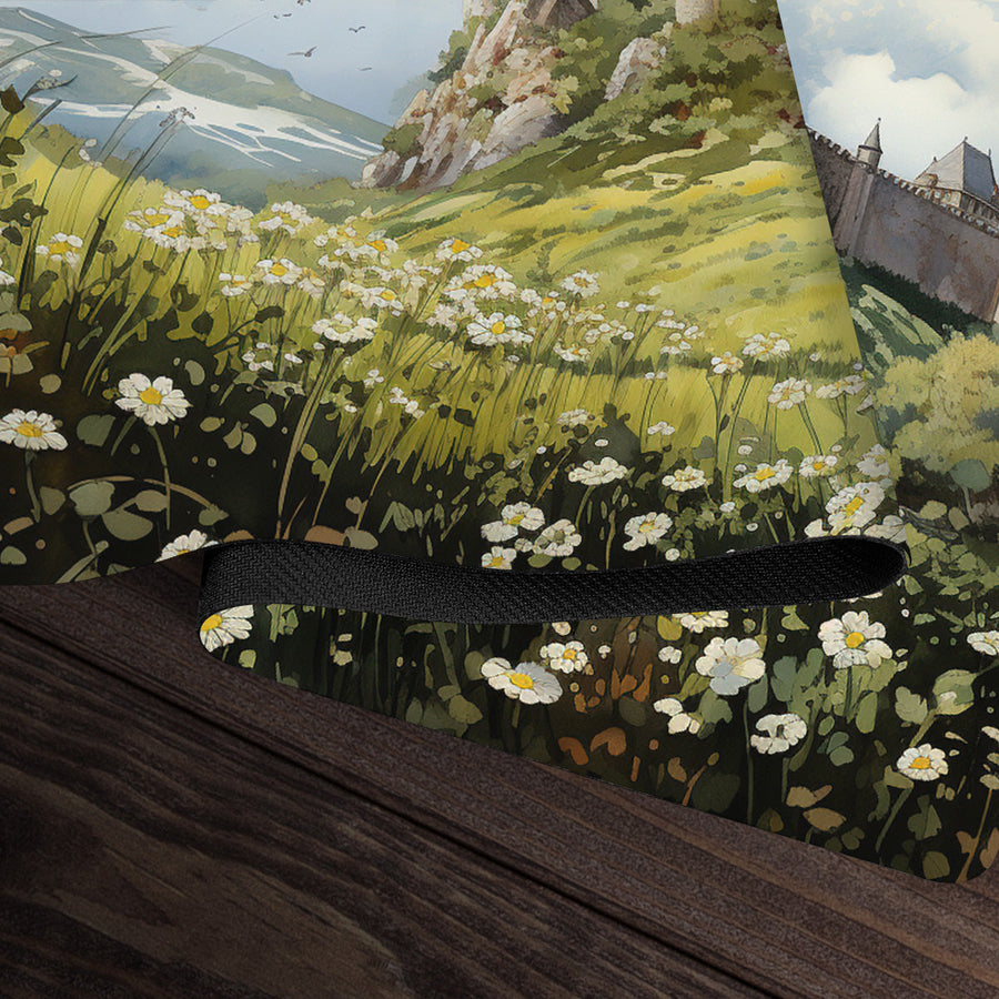 Standard Playmat measures at 24” x 14” inches and is 1/16 of an inch thick. It’s made with a smooth cloth top and strong rubber backing.