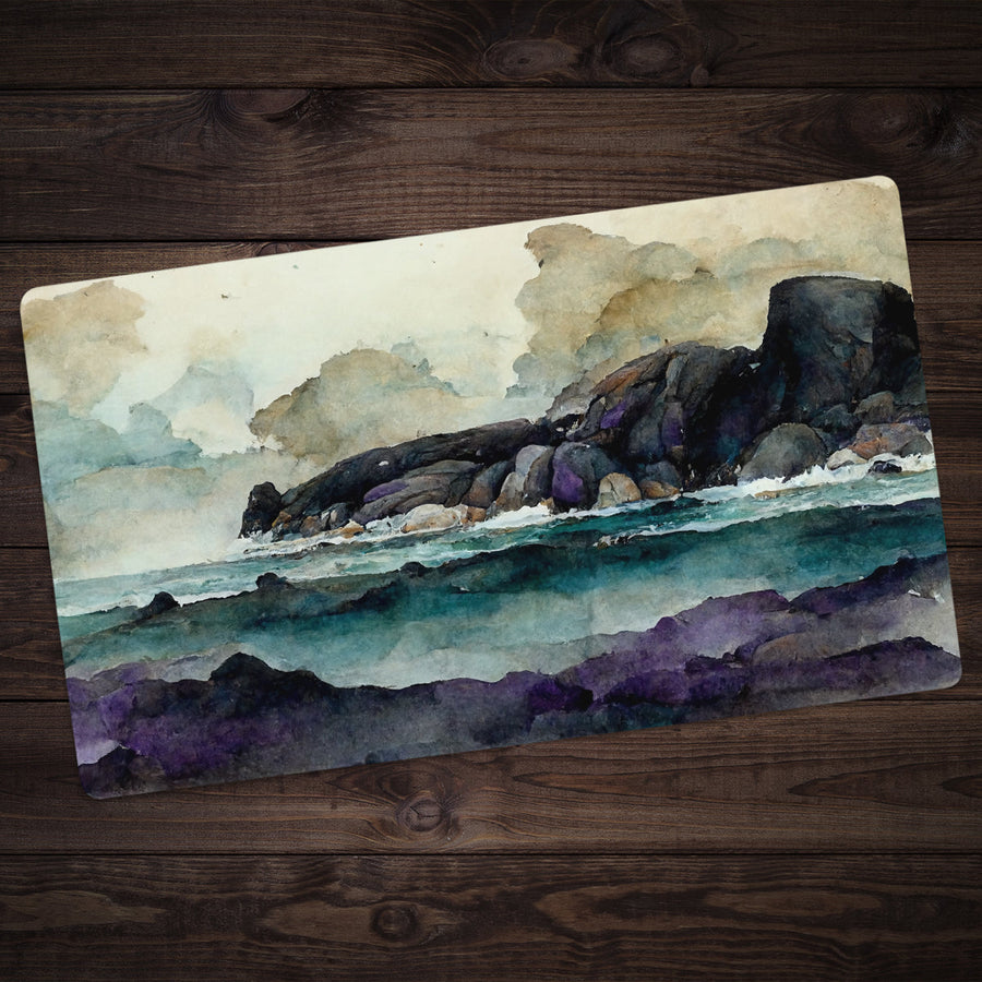 Standard Playmat measures at 24” x 14” inches and is 1/16 of an inch thick. It’s made with a smooth cloth top and strong rubber backing.